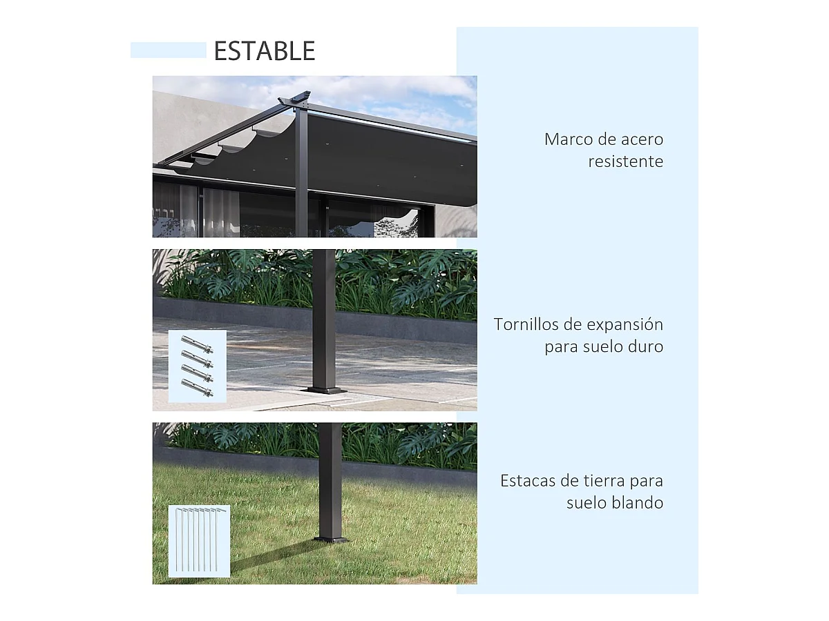 Pérgola gris carbón 300x300x223 cm Outsunny