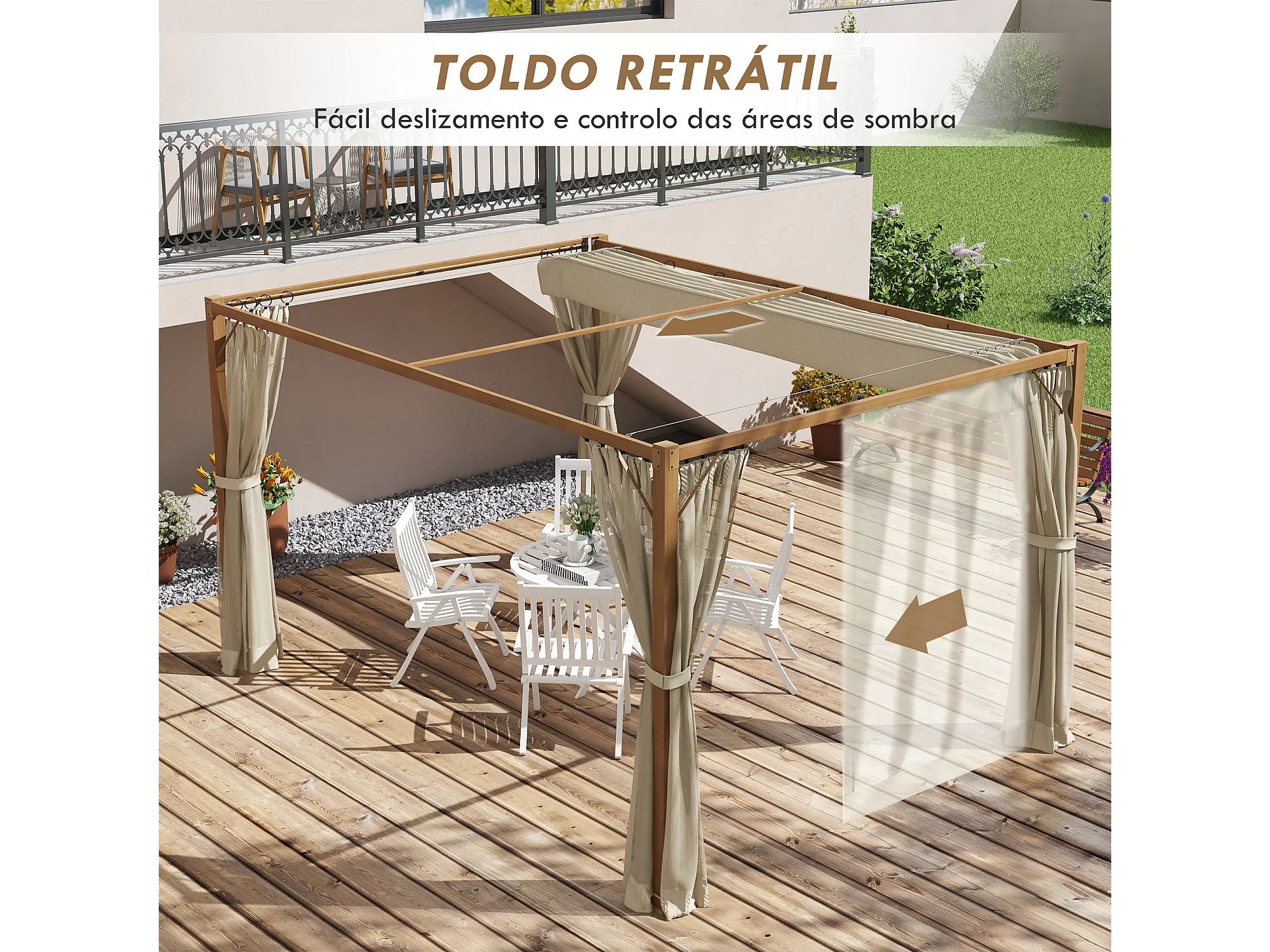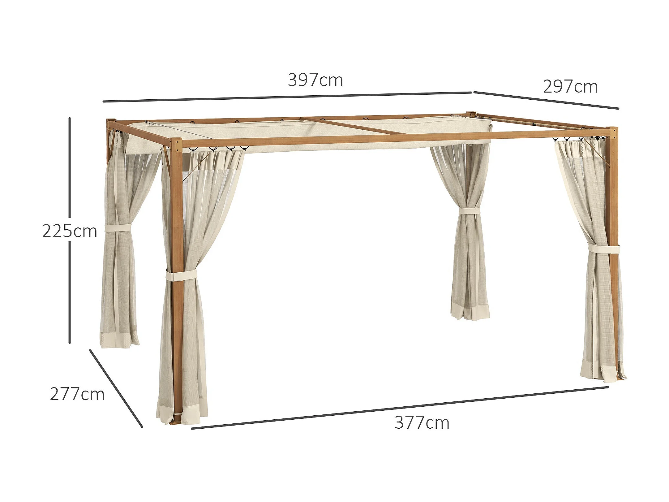 Pérgola Nancy Outsunny retráctil + mosquiteras natural 225x397x297 cm