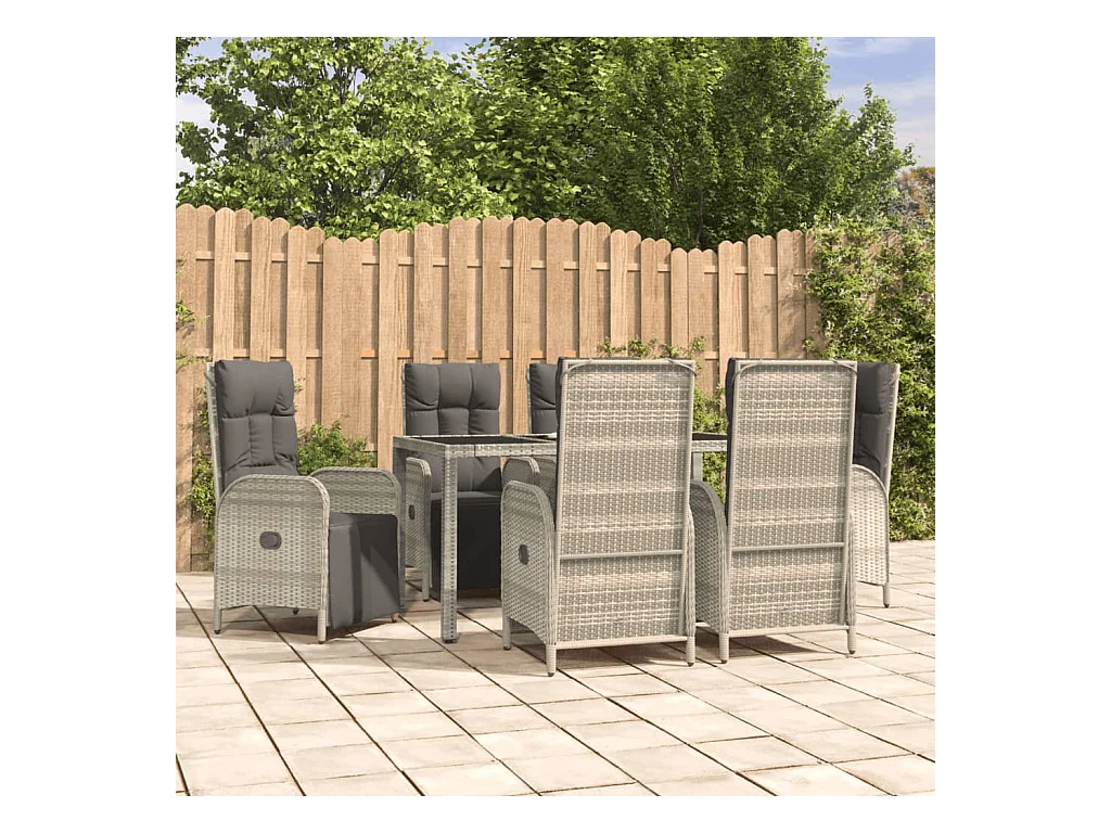 Bryndra Set comedor jardín 7 pzas y cojines ratán sintético gris claro