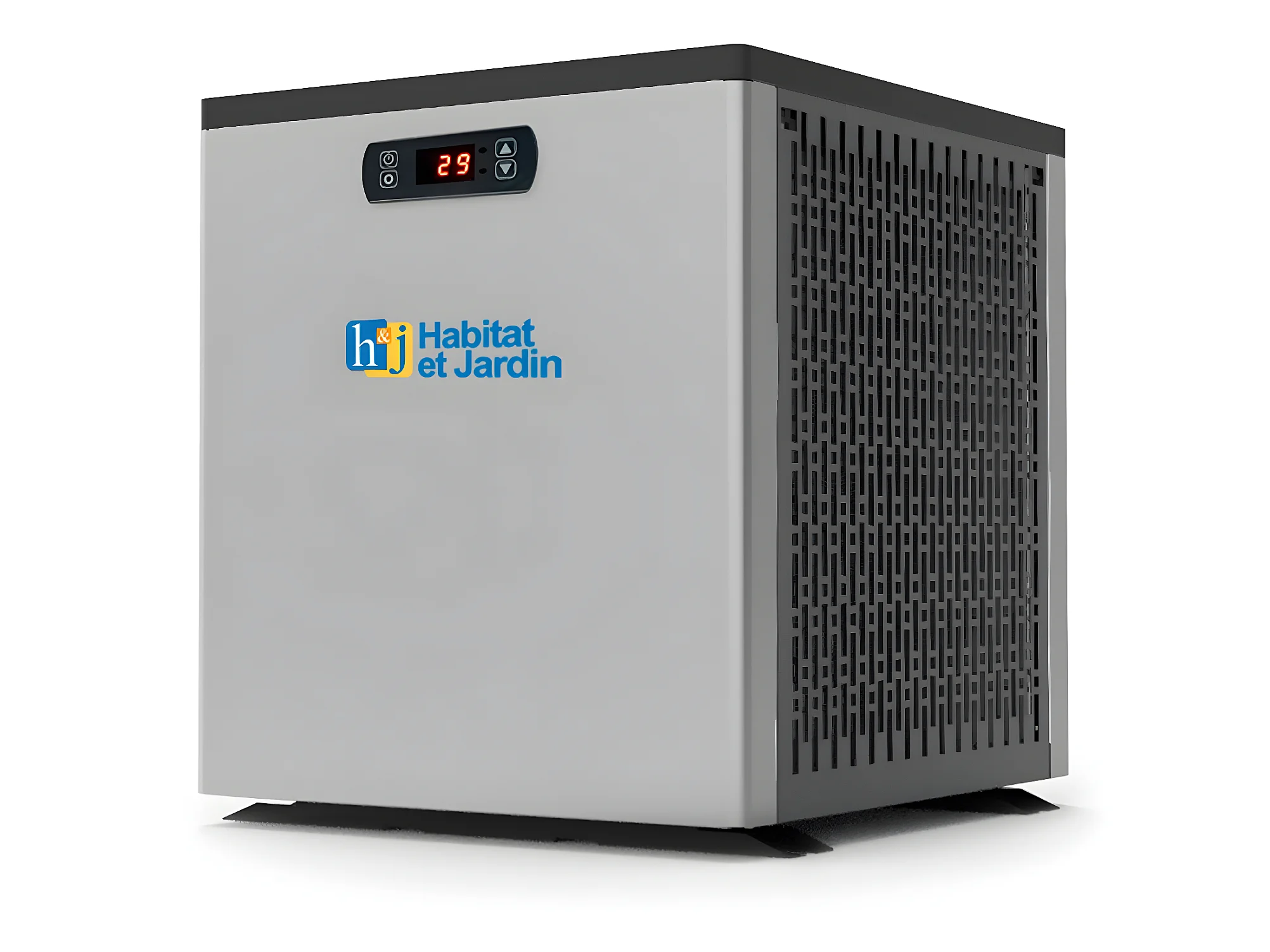 Piscina rectangular de madera "Caimans" - 4,10 x 3,00 x 1,24 m + Mini bomba de calor 3,5kW - Metal - Gris