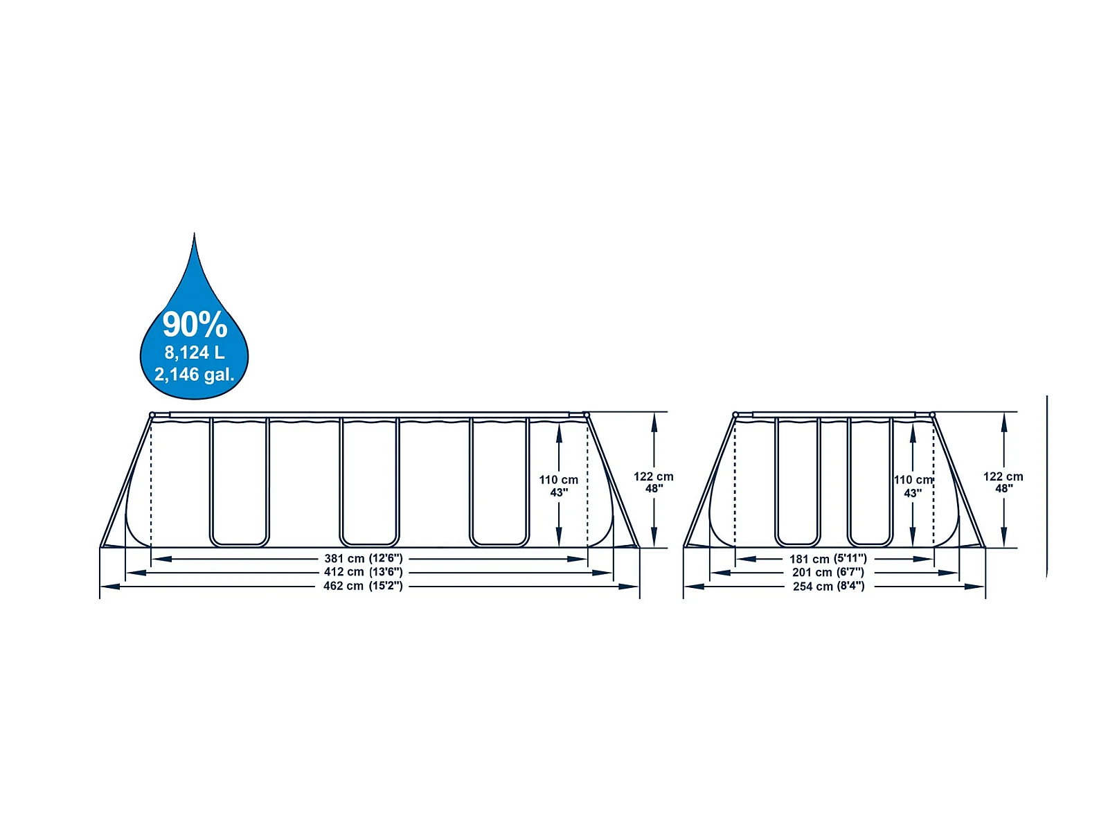 Piscina elevada rectangular 450x220x84 cm con bomba