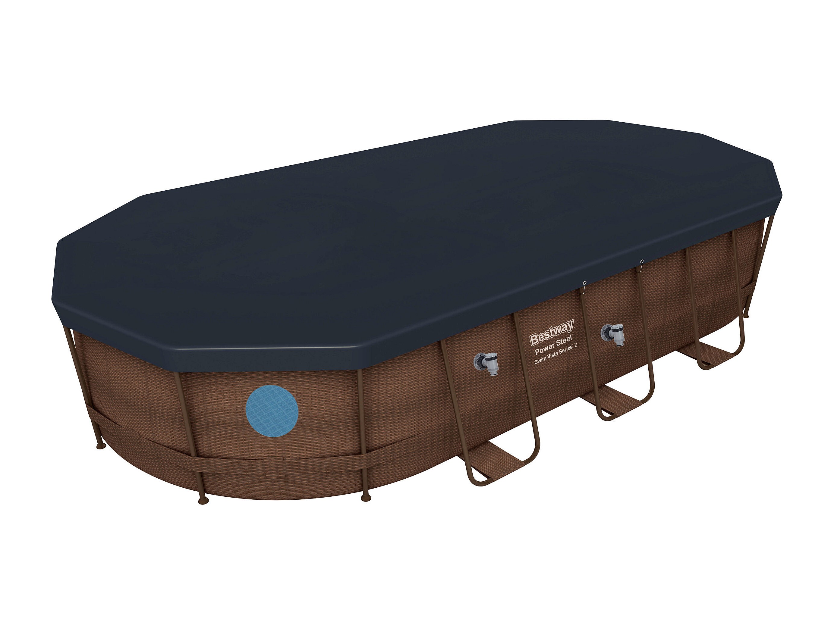 Piscina Desmontable Tubular Bestway Power Steel Oval Diseño Ratán 549x274x122 cm con Depuradora Cartucho 5.678 L/H