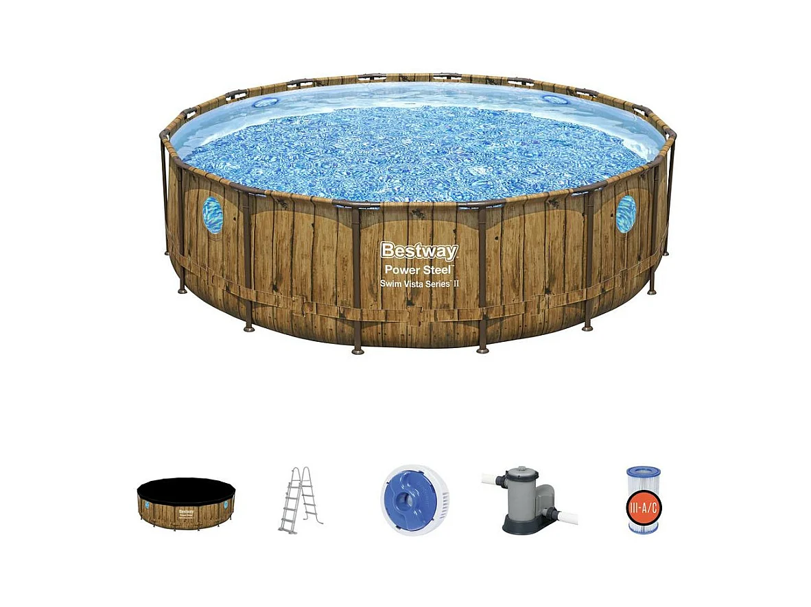 Piscina Desmontable Tubular Bestway Steel Pro Max 427x107 cm con Depuradora Cartucho 3.028 L/H Cobertor y Escalera