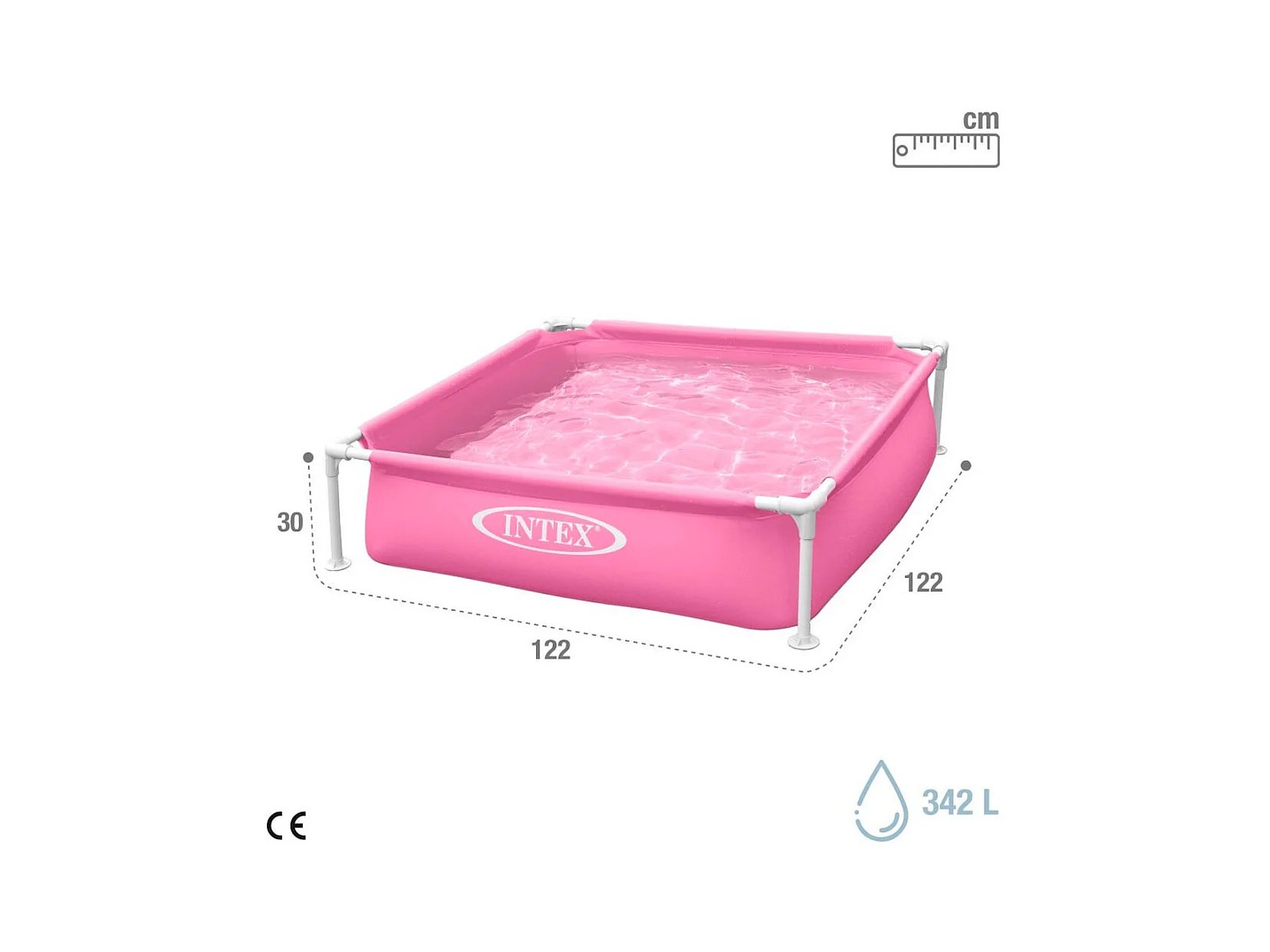 Piscina infantil Small Frame Intex cuadrada 342L +2A rosa 30x122x122 cm