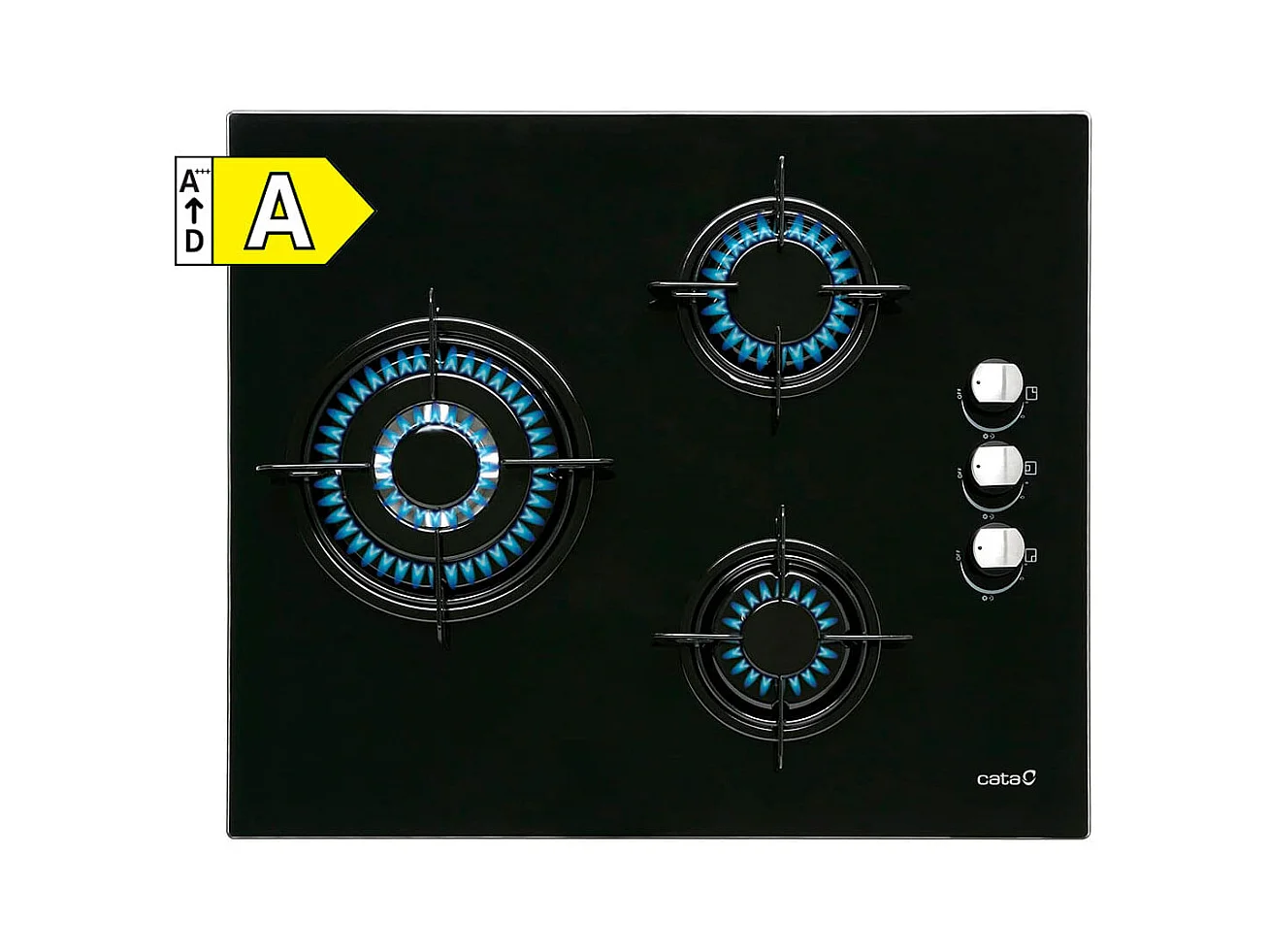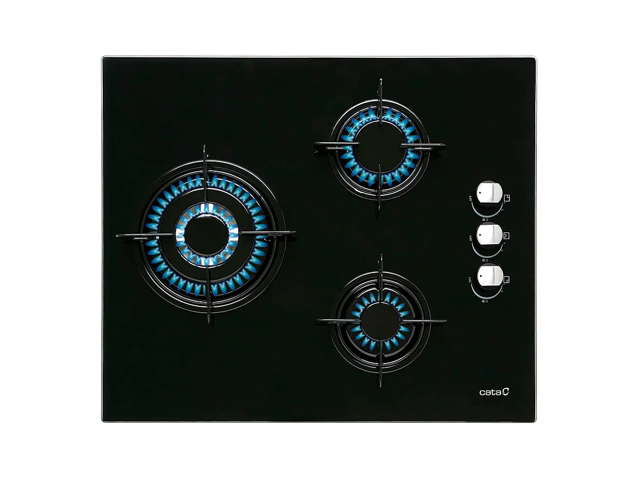 Placa de gas Cata CIB 6021 BK 3 fuegos cristal negro A 59 cm