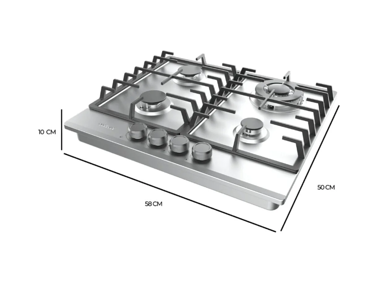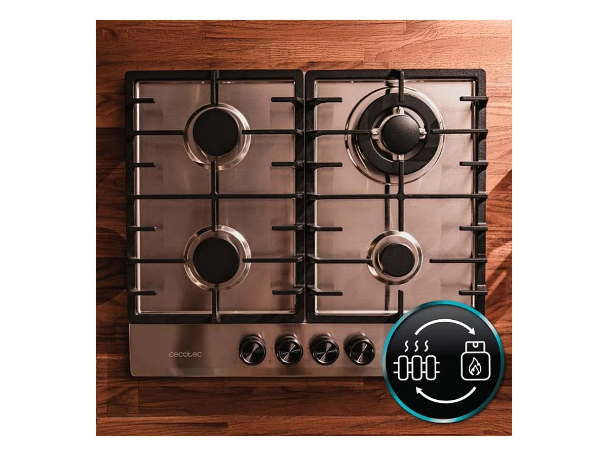 Placa de gas Cecotec Bolero Squad G 4200F 8000W 4 fuegos inox 58 cm
