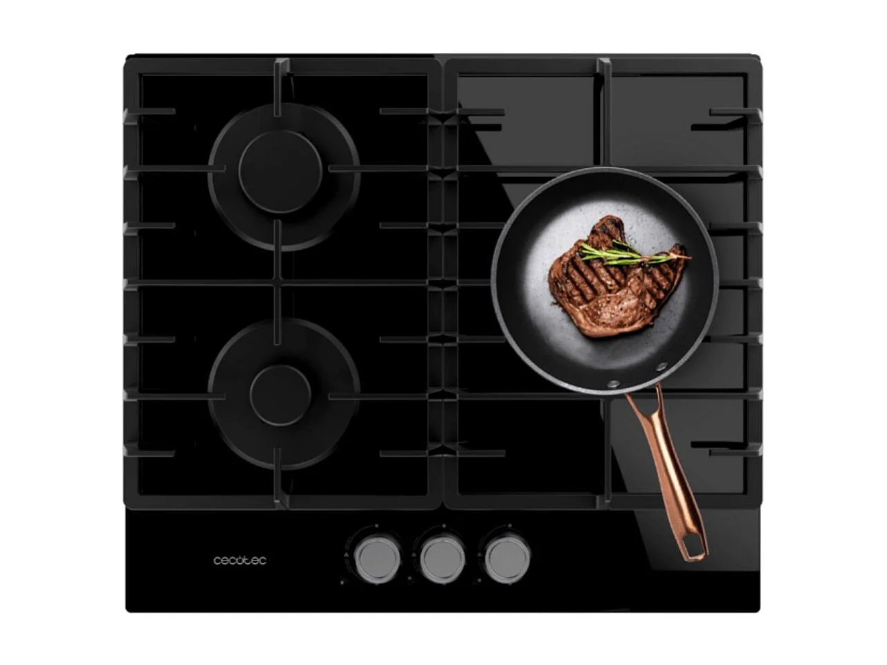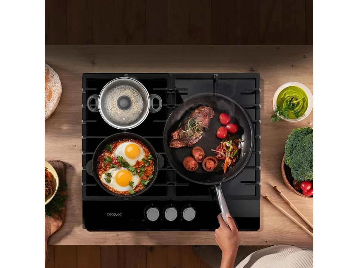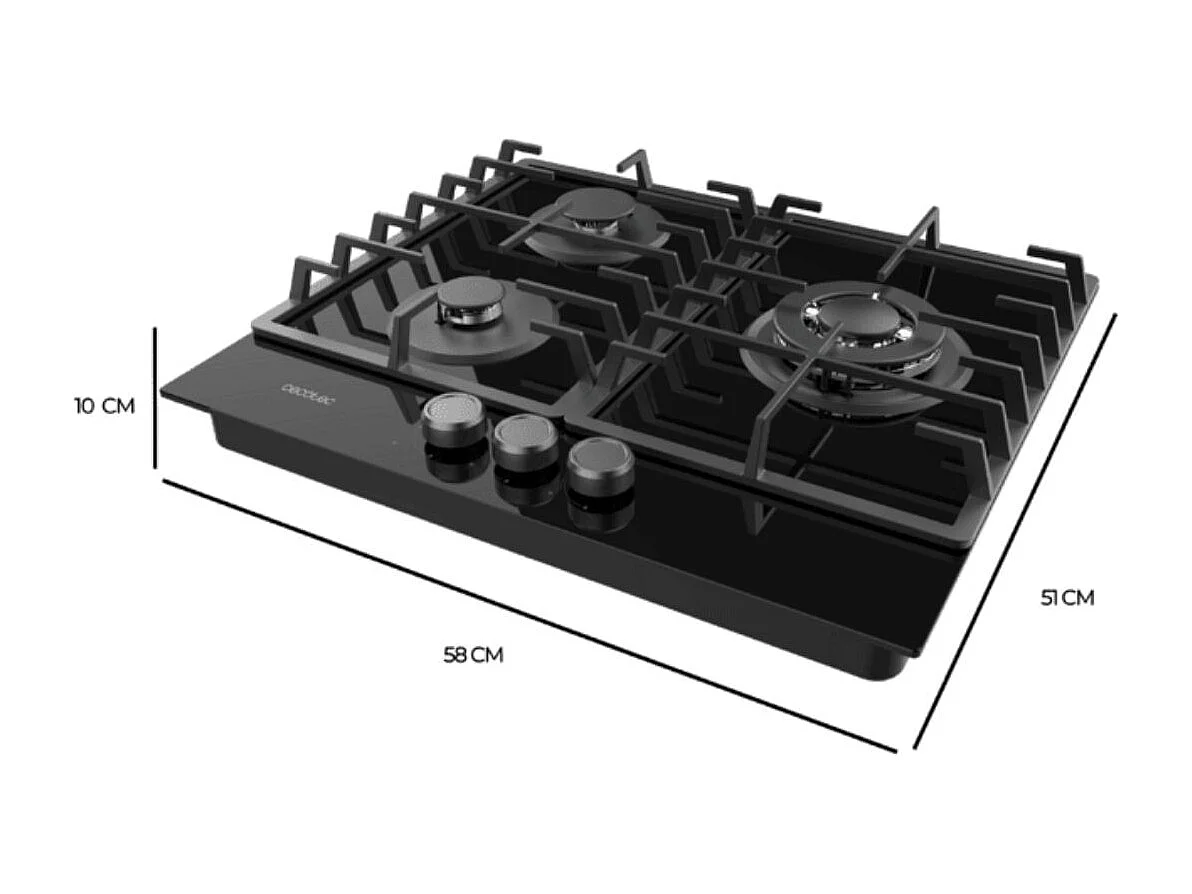 Placa de gas Cecotec Bolero Squad G3200F Glass Black 6250W 3 fuegos 58 cm negro