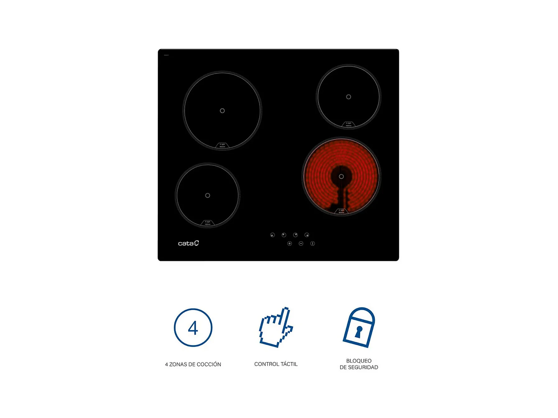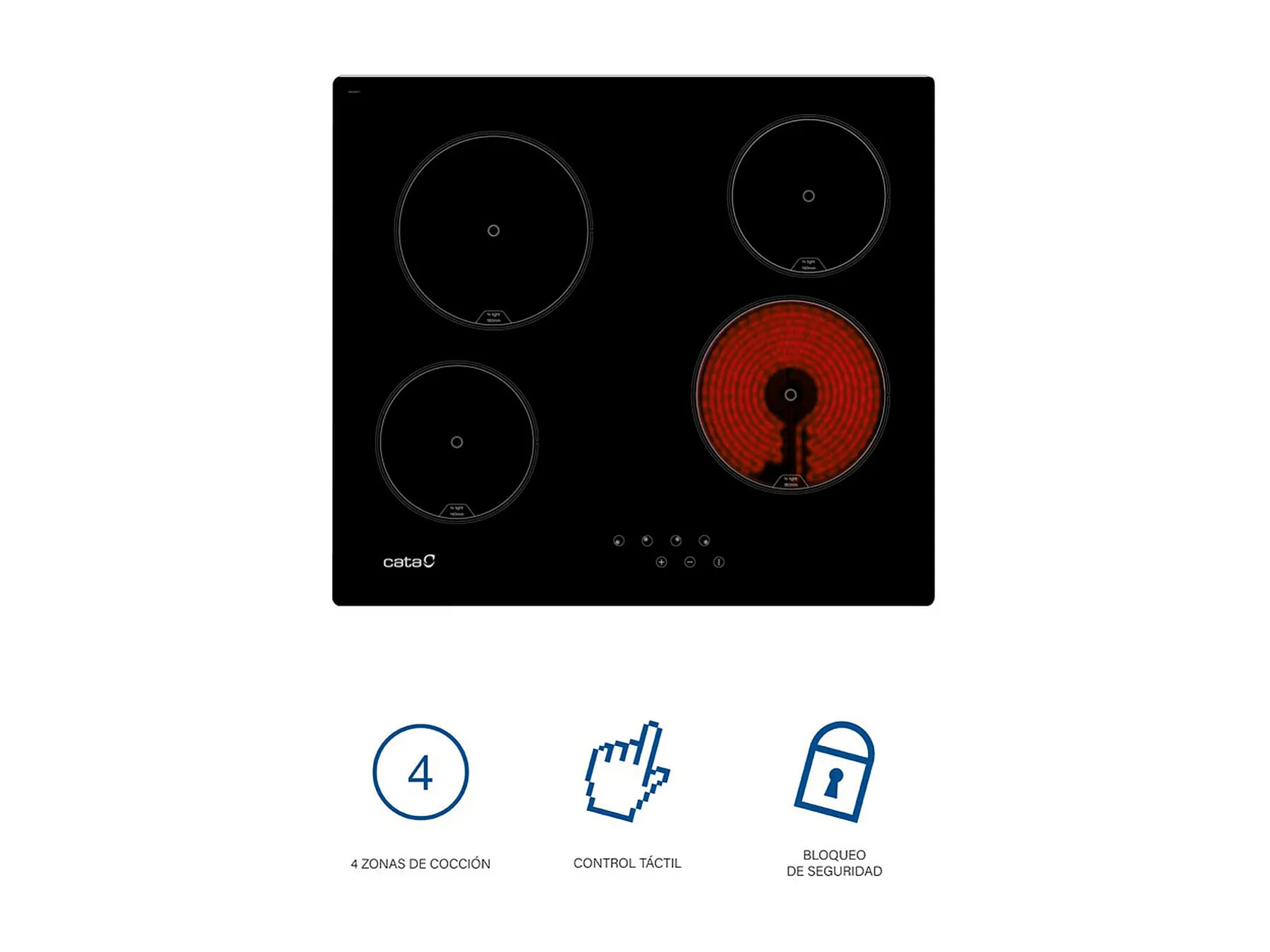 Placa vitrocerámica Cata TN 604/B 6000W 4 zonas negro 59 cm