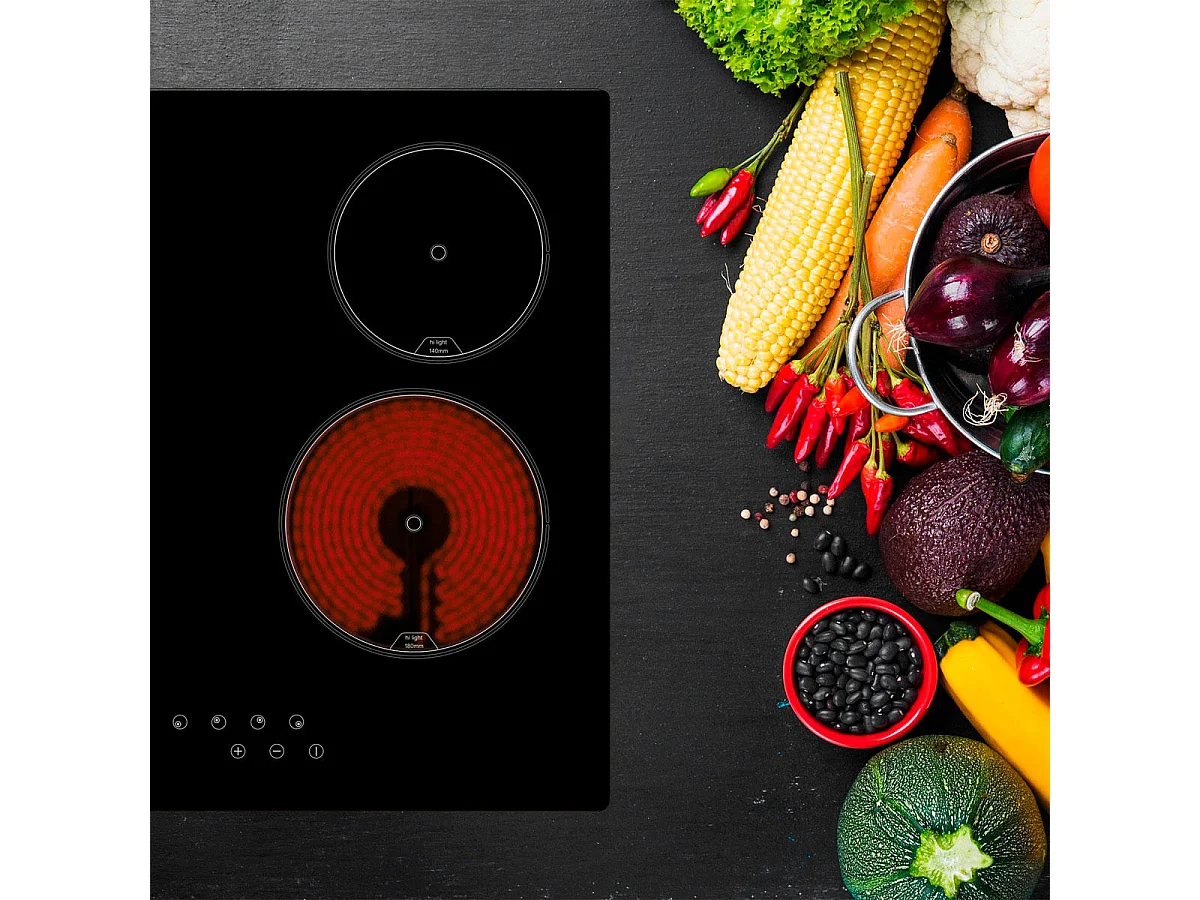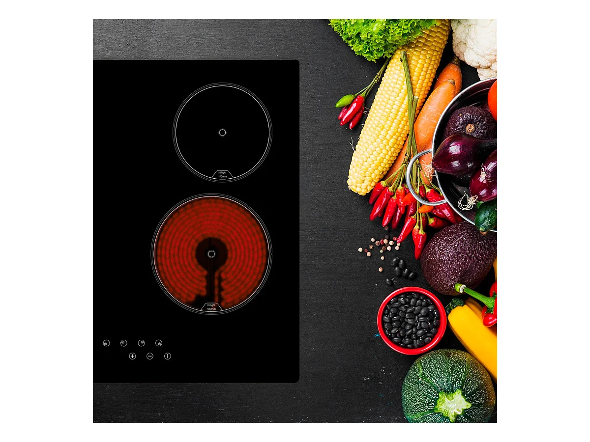 Placa vitrocerámica 2 zonas 3000W táctil negro 28,8 cm