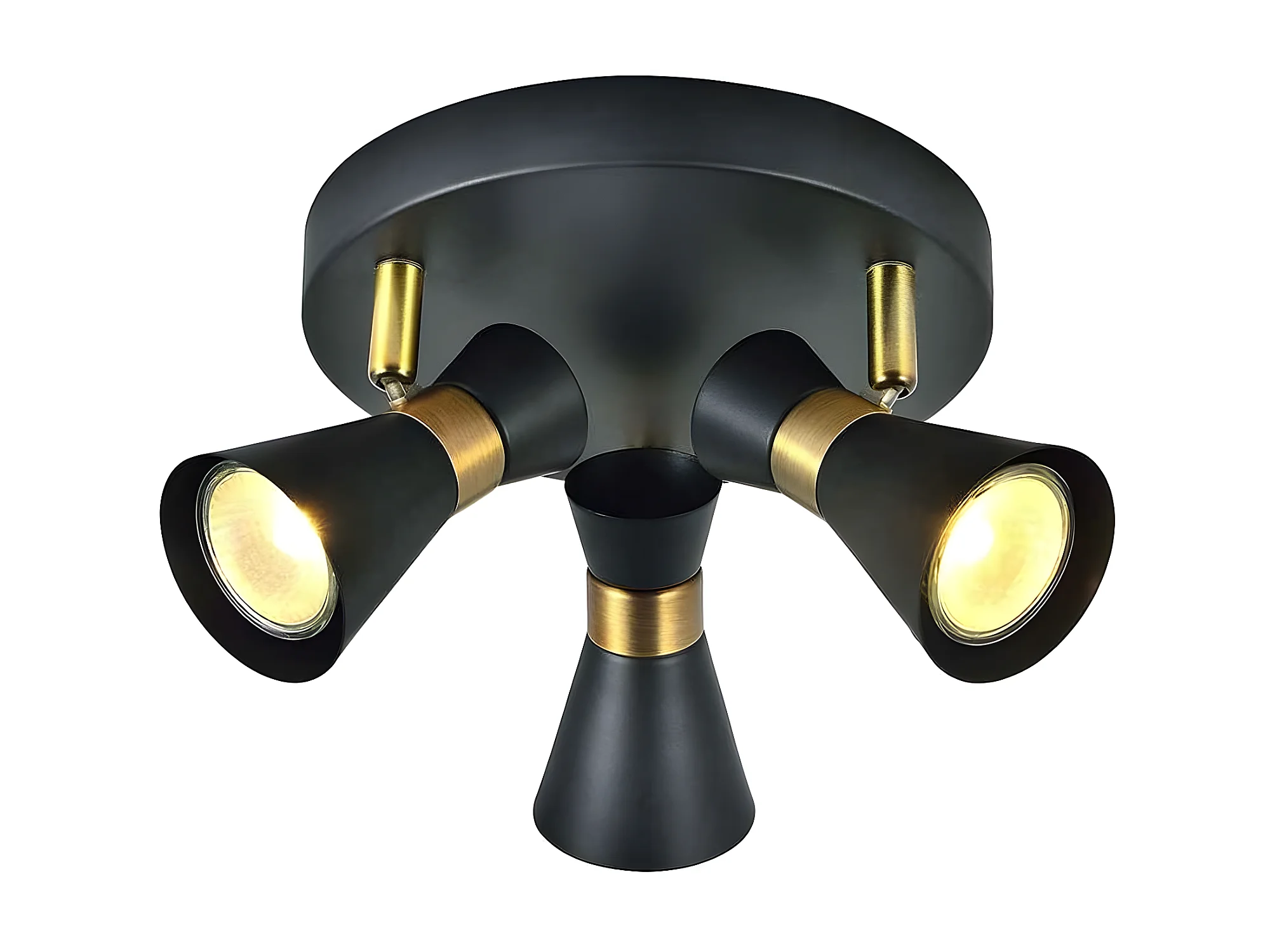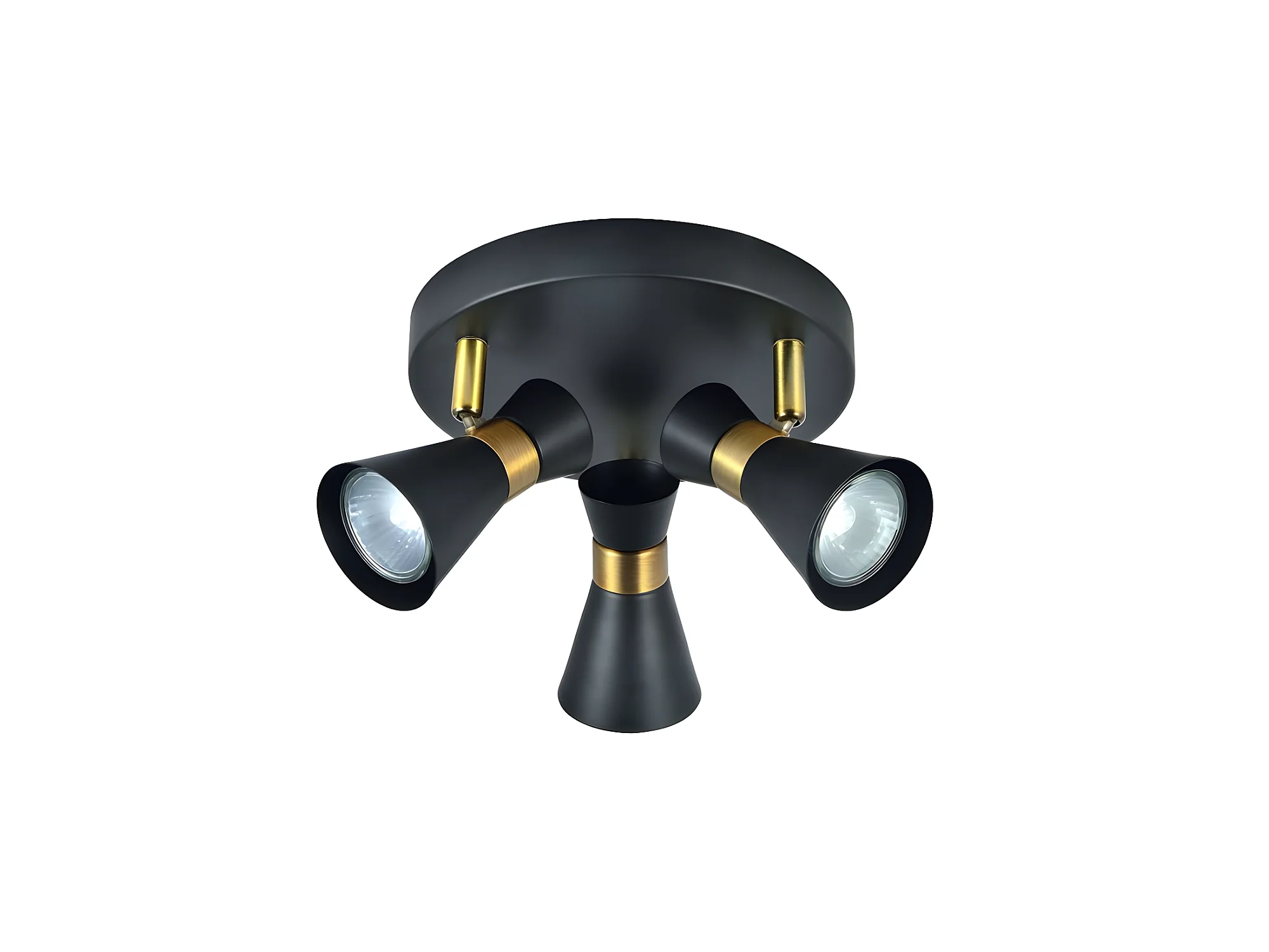 Plafon De 3 Focos Para Baño Modelo Beethoven Negro/oro