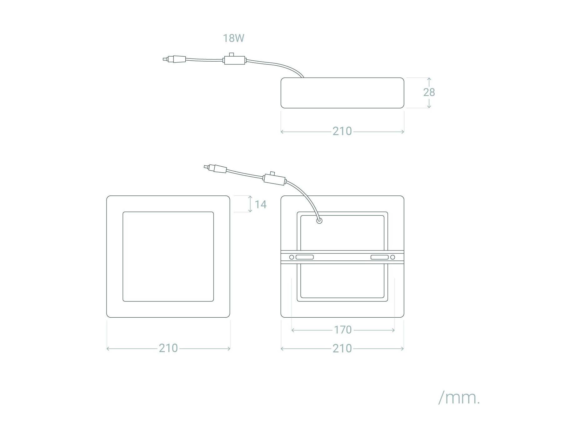 Plafón LED 18W Cuadrado Superslim CCT Seleccionable 220x220 mm Seleccionable (Cálido-Neutro-Frío)