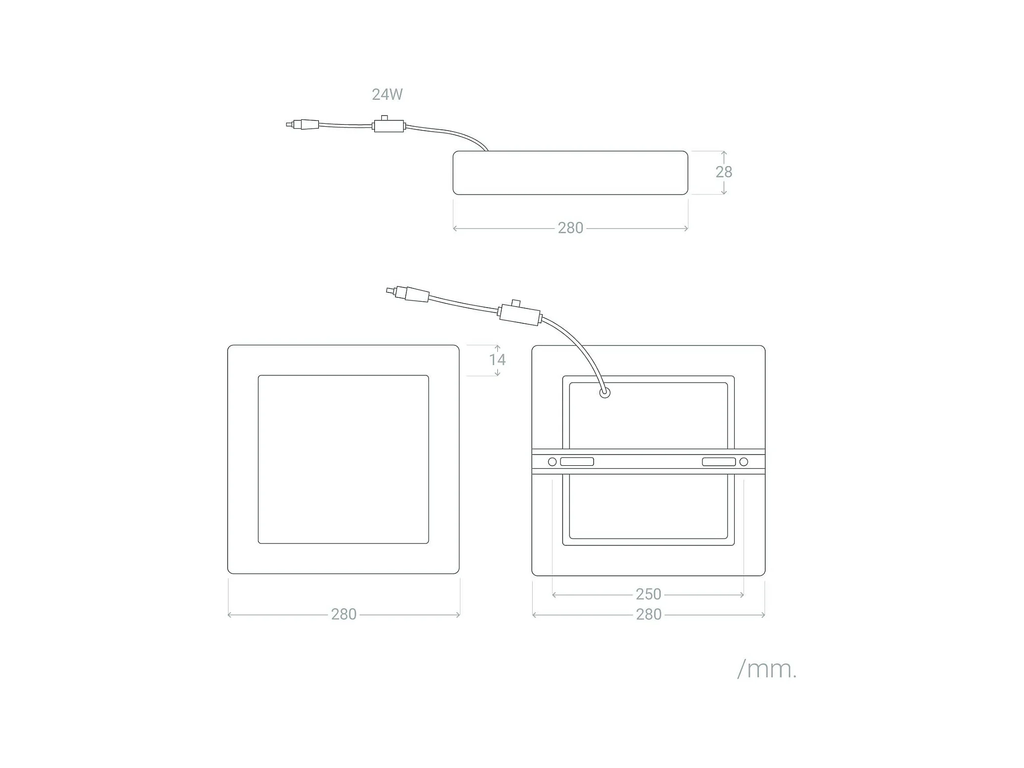 Plafón LED 24W Cuadrado Superslim CCT Seleccionable 280x280 mm Seleccionable (Cálido-Neutro-Frío)