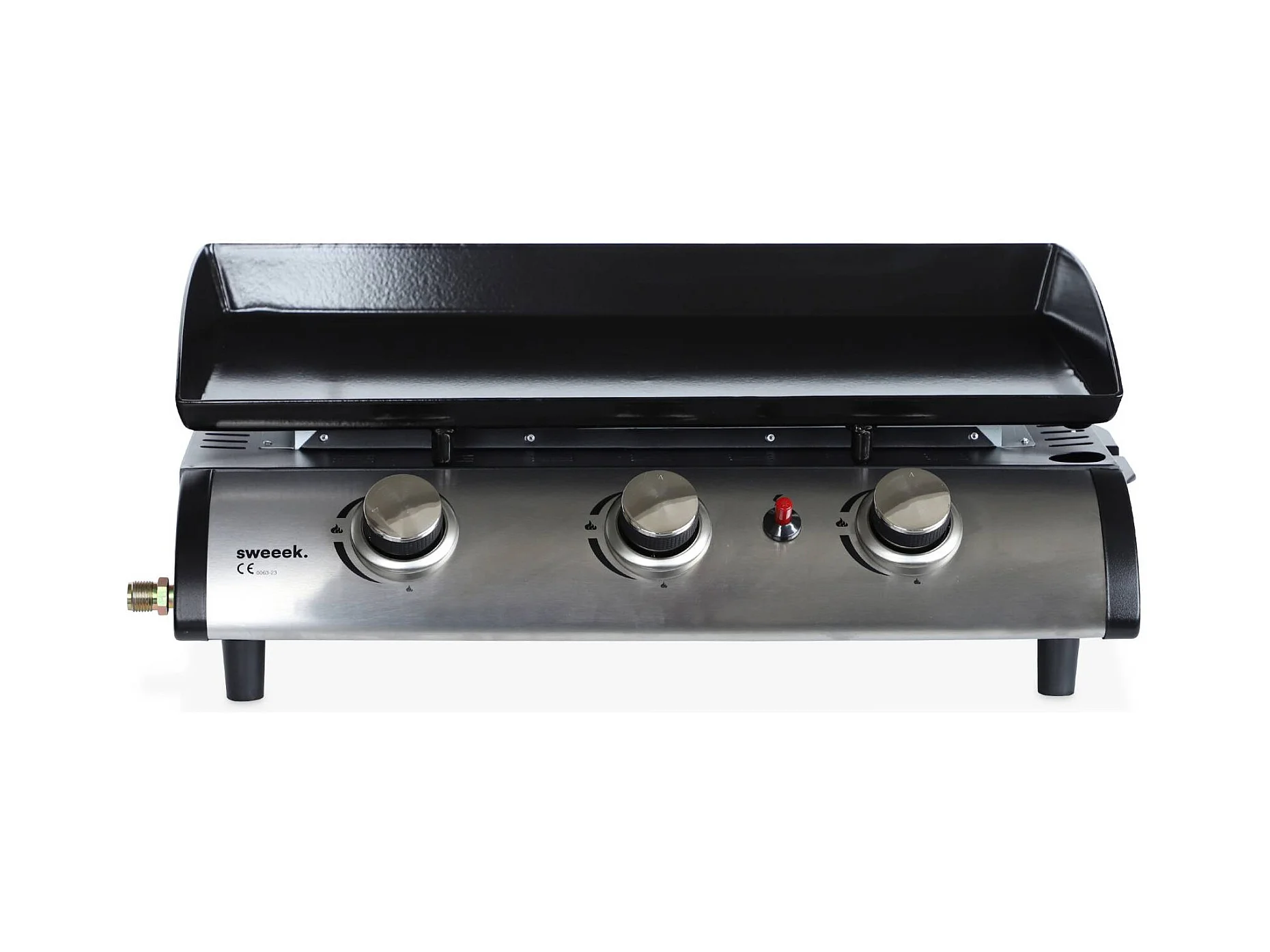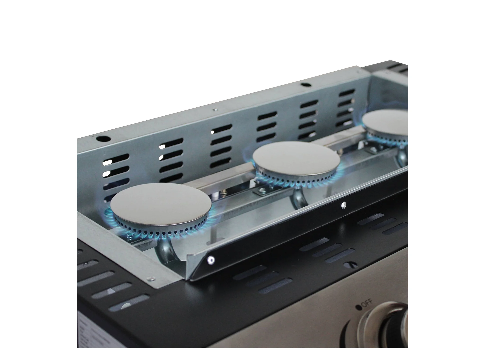 Plancha de gas con 3 quemadores de acero inoxidable, 7.5kw negro
