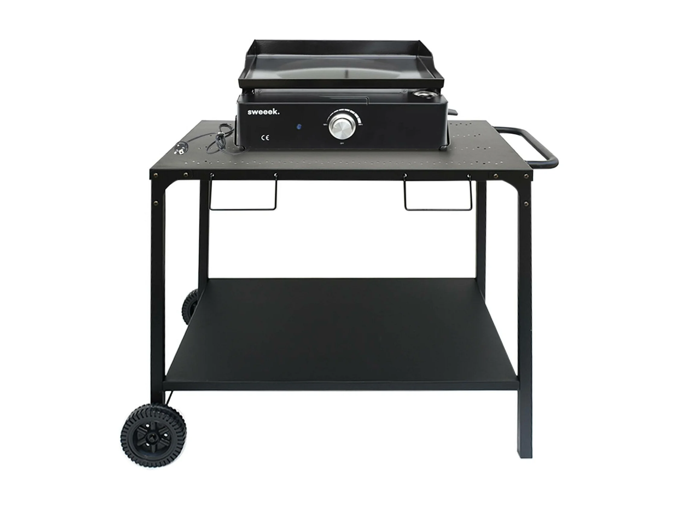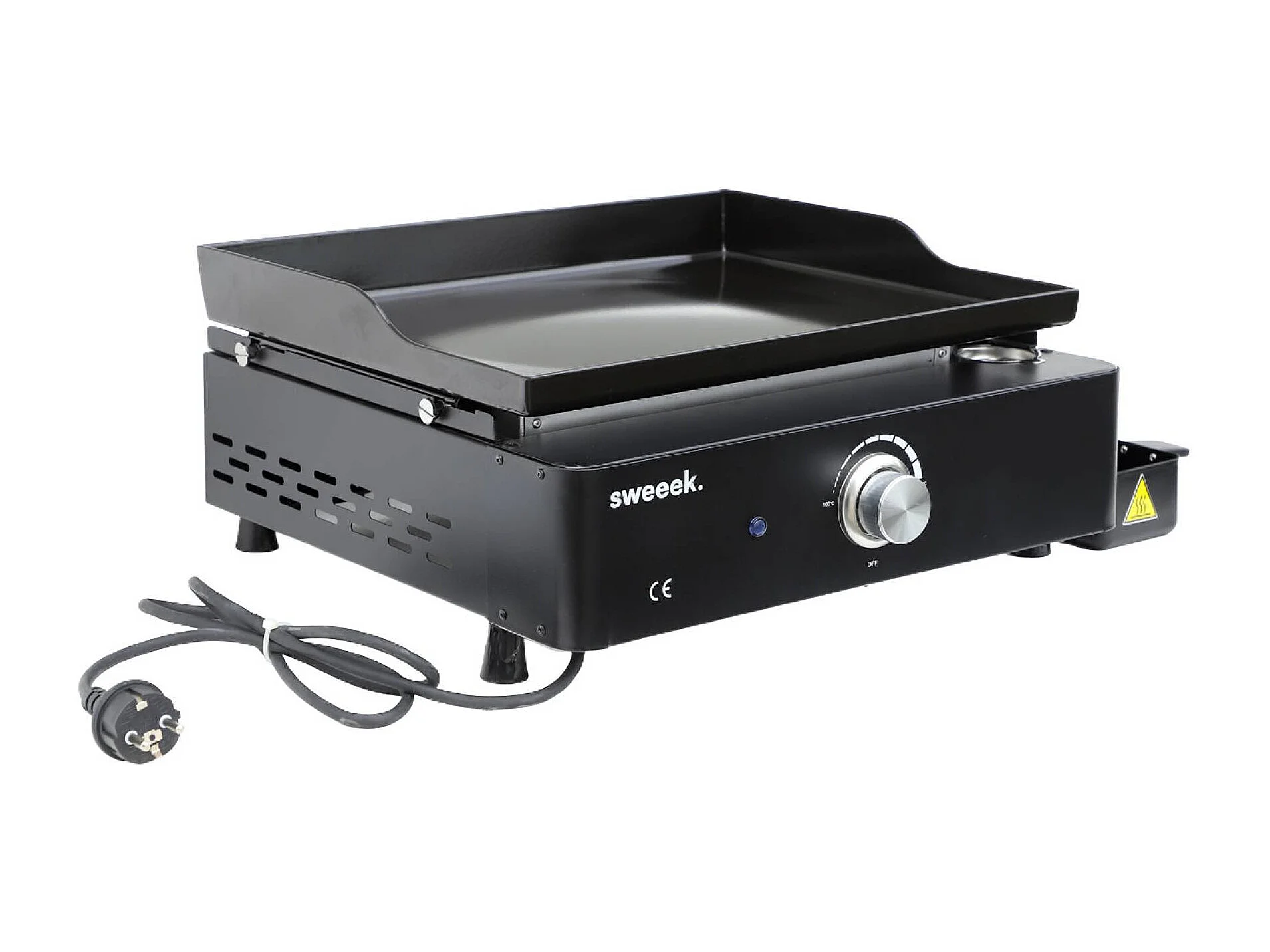 Plancha eléctrica 1 quemador con mesa, acero esmaltado de 2200w negro