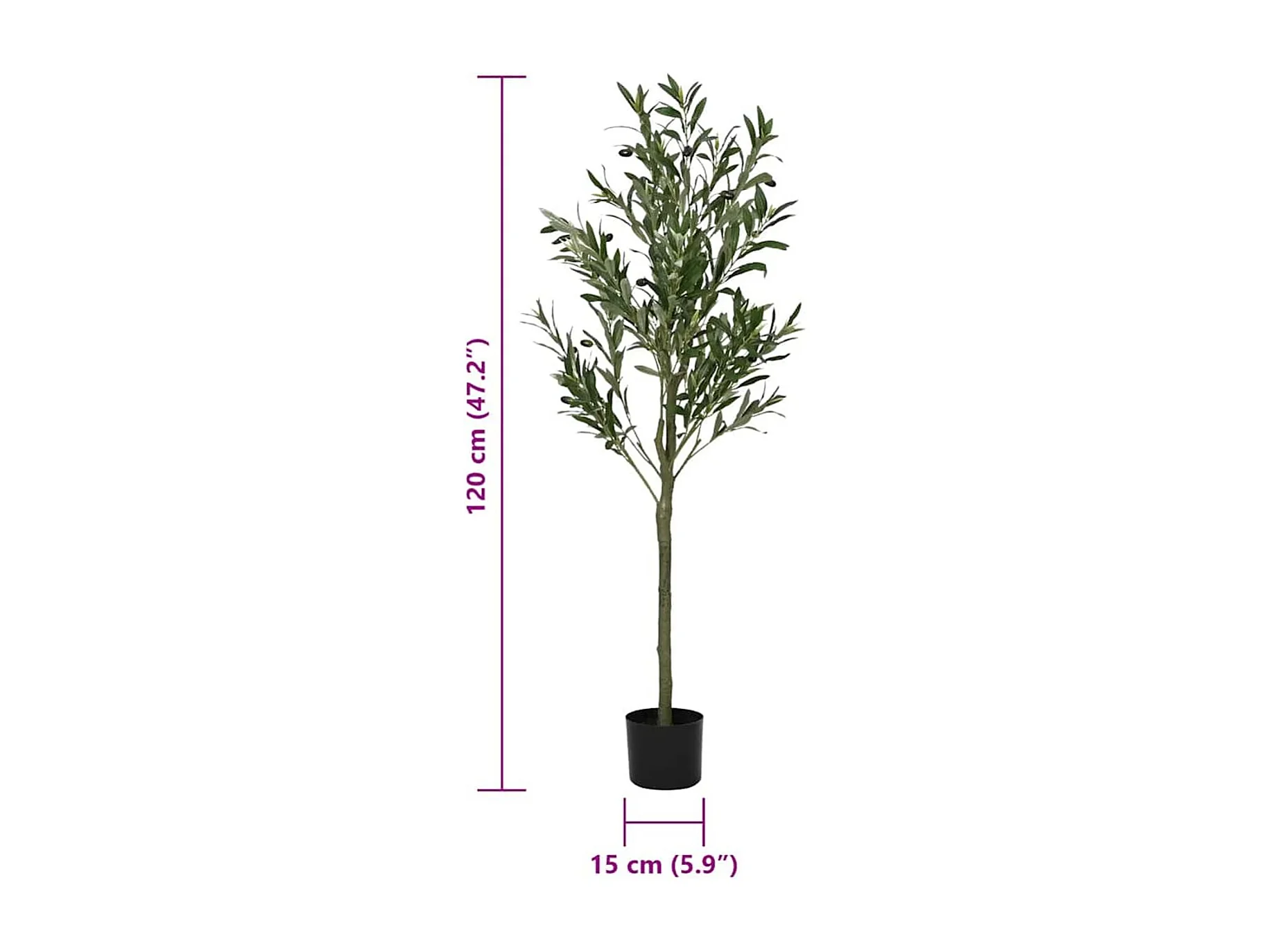 Planta artificial Olivo 450 ramas macetero + aceitunas verde oscuro 120 cm