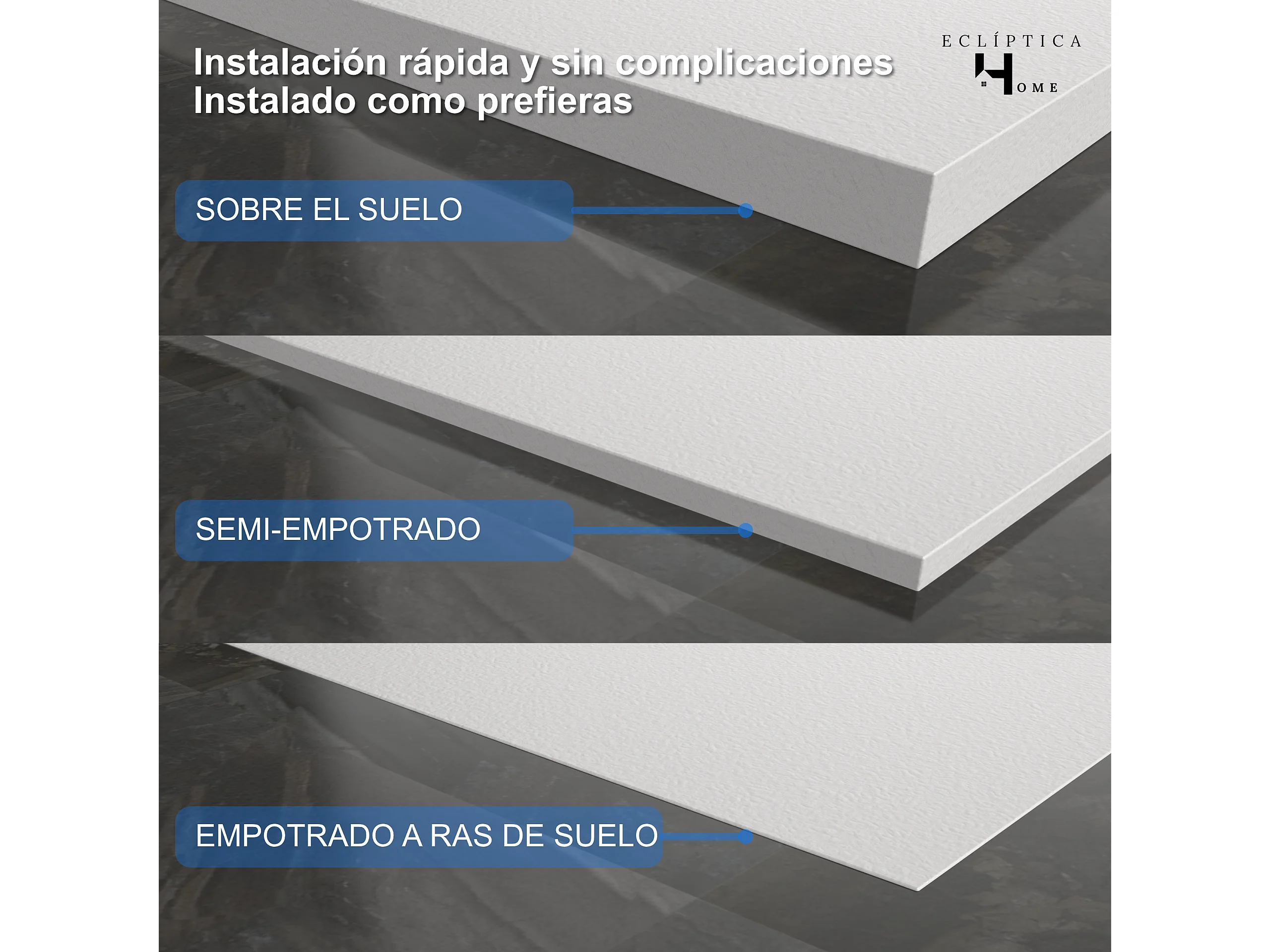 Plato Ducha Resina TITAN- Antideslizante Extraplano Ultraligero Textura pizarra Color Blanco 80X130 CM-Valvula+Rejilla Inox