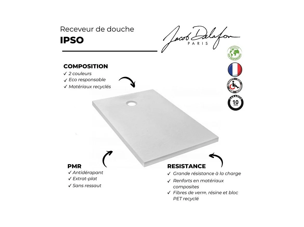 Plato de ducha 90 x 90 JACOB DELAFON Ipso blanco cuadrado