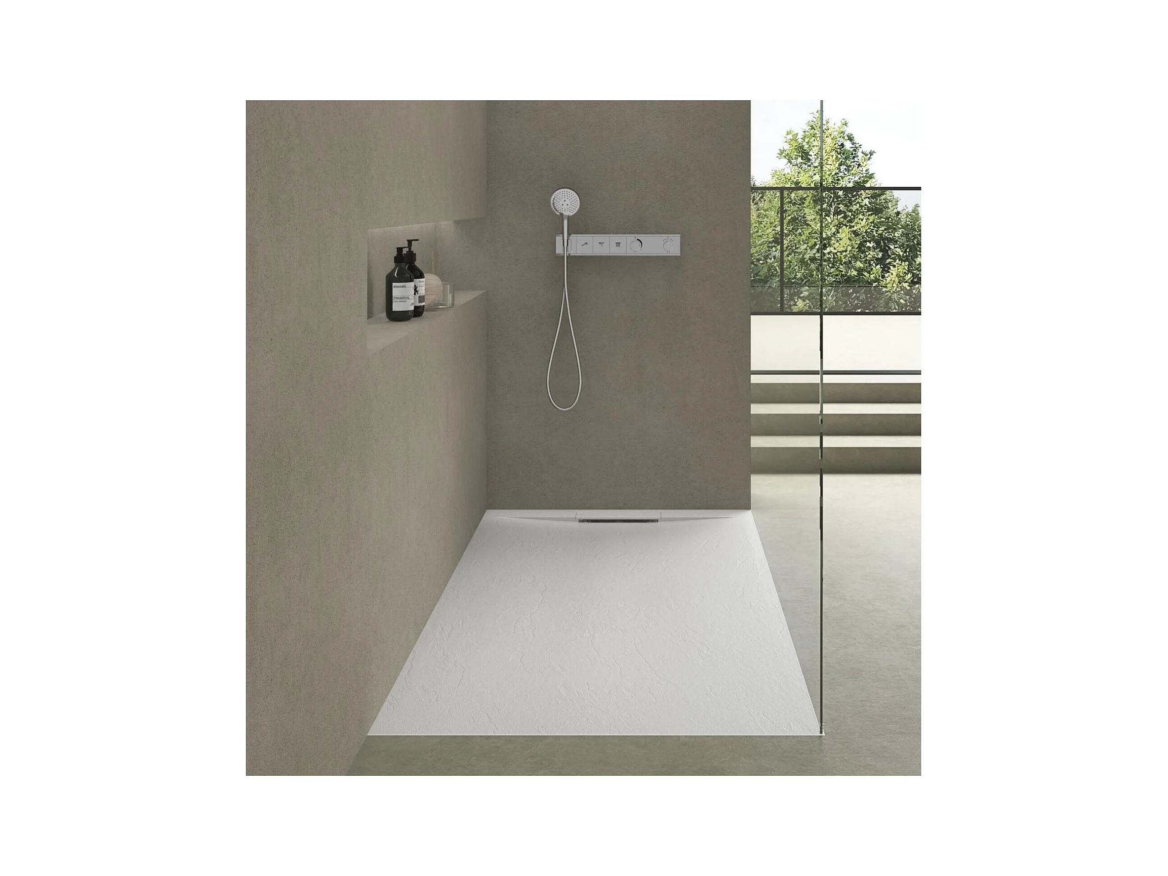 Plato de ducha extraplano ONA efecto piedra blanca 90x90