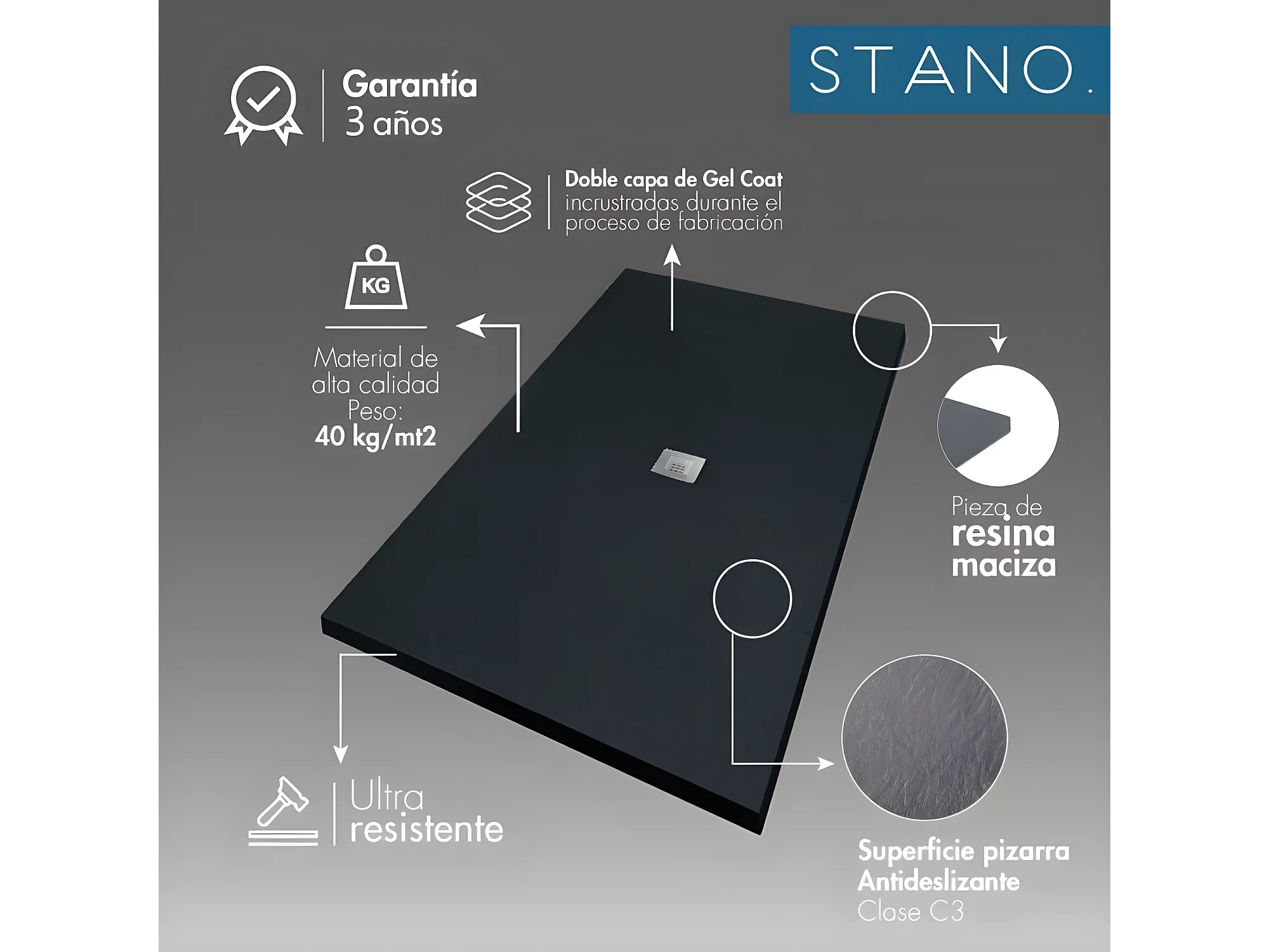 Plato de ducha gris antracita