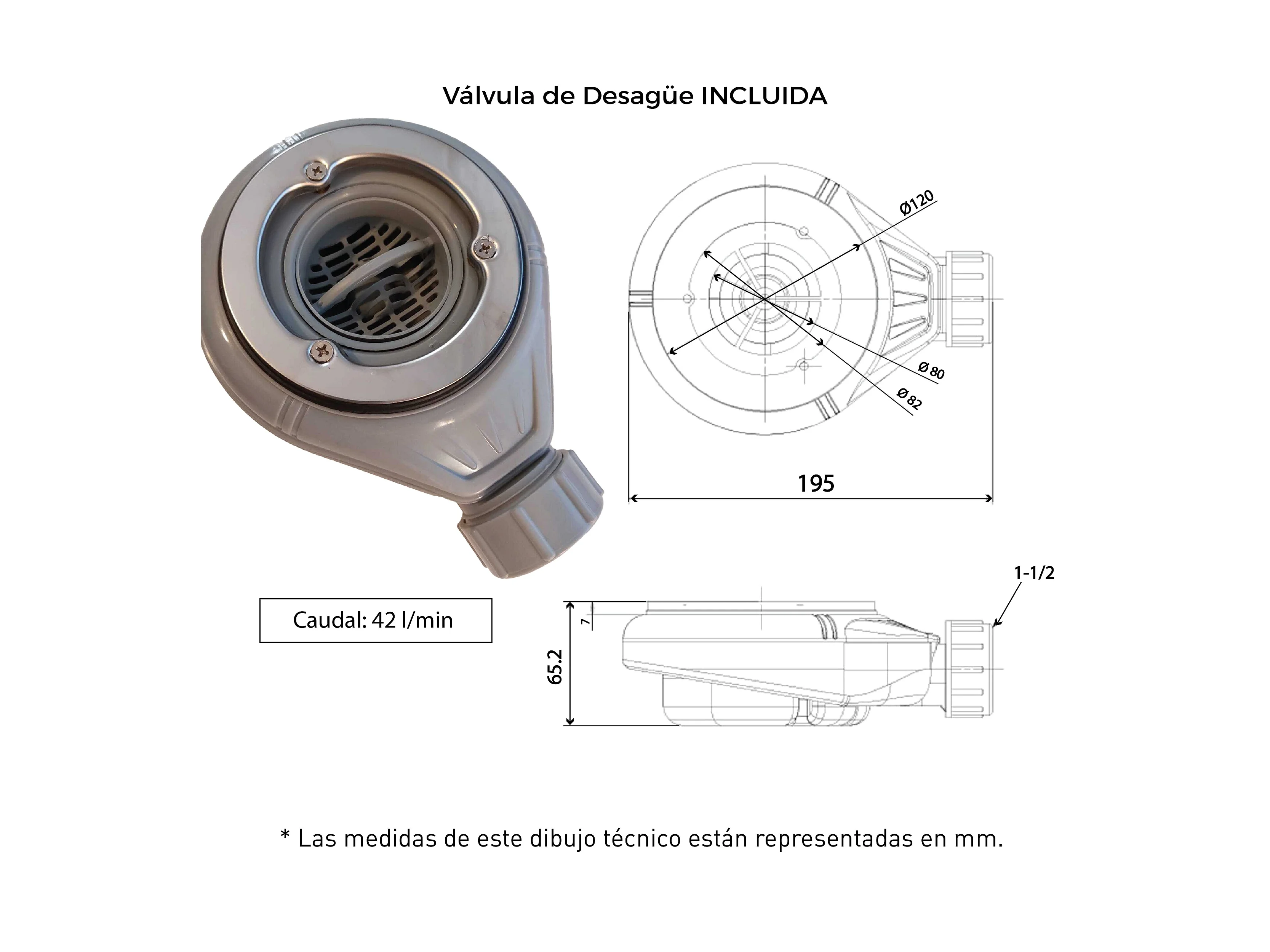 Plato de ducha pizarra ONDA ANTRACITA 80x110 cm rejilla color