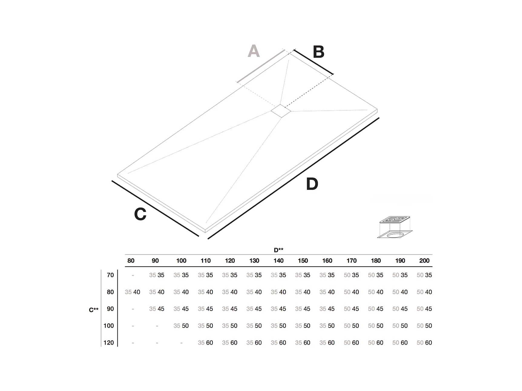 Plato de ducha de resina 120 x 80 Pizarra blanca Essebagno