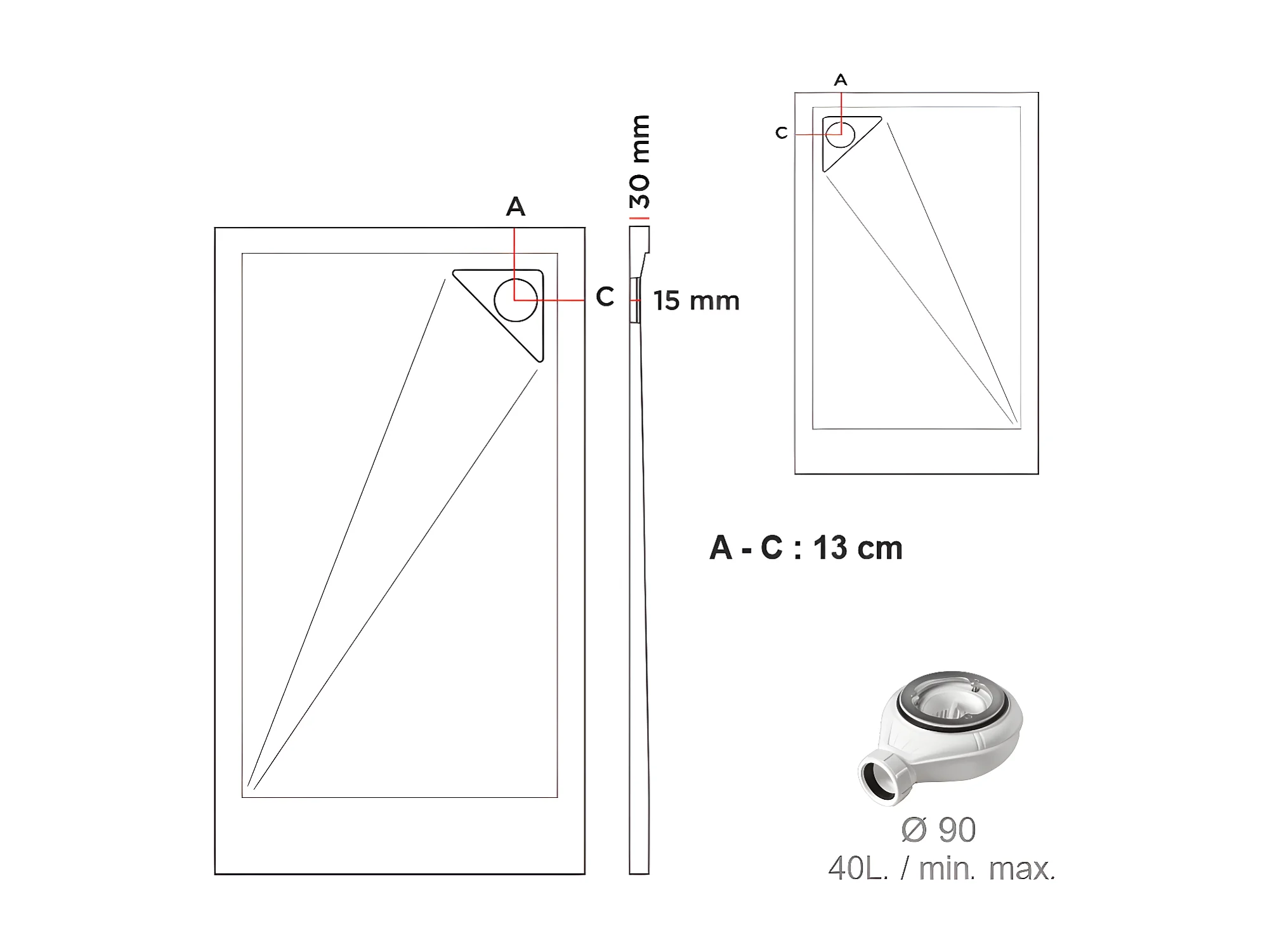 Plato de ducha resina TRINITY ANTRACITA 70x110 cm Rejilla Derecha