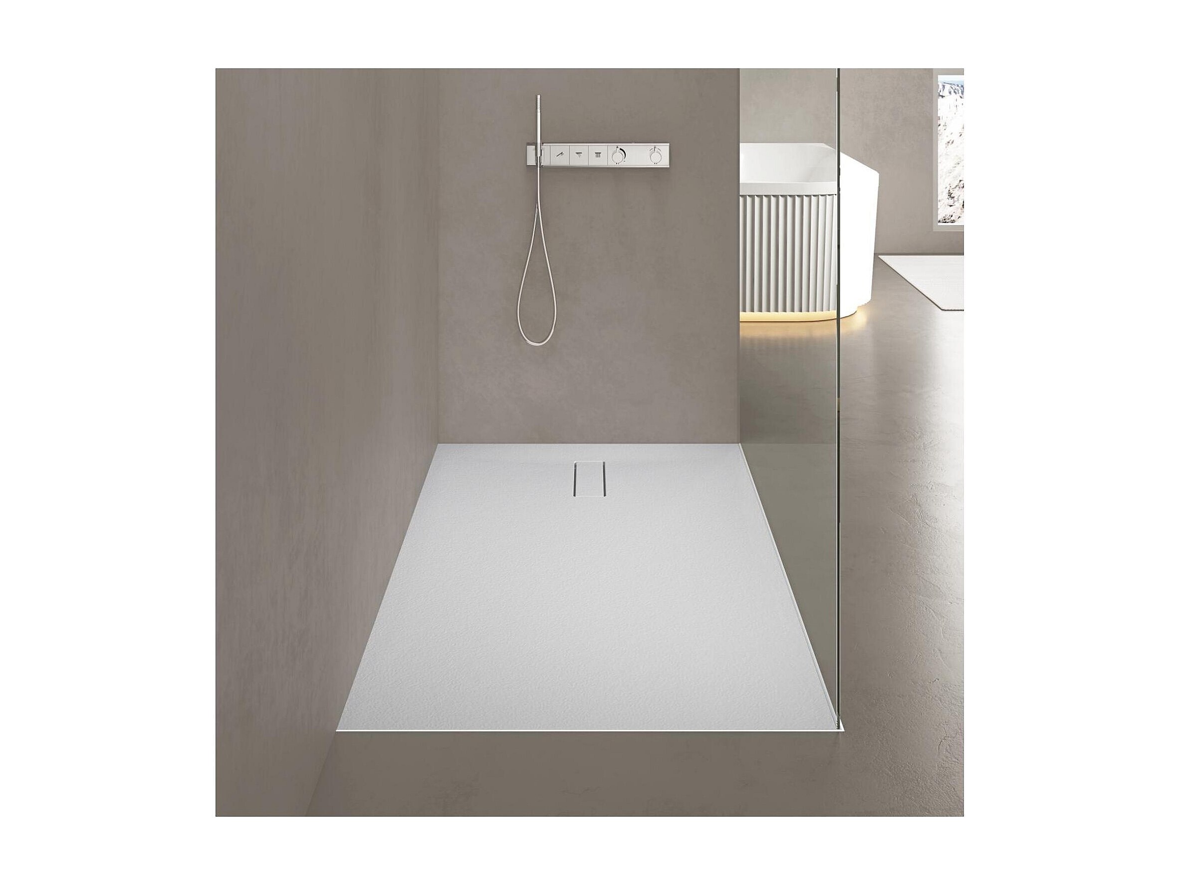 Plato de ducha SOMA extraplano efecto piedra blanco 120x90