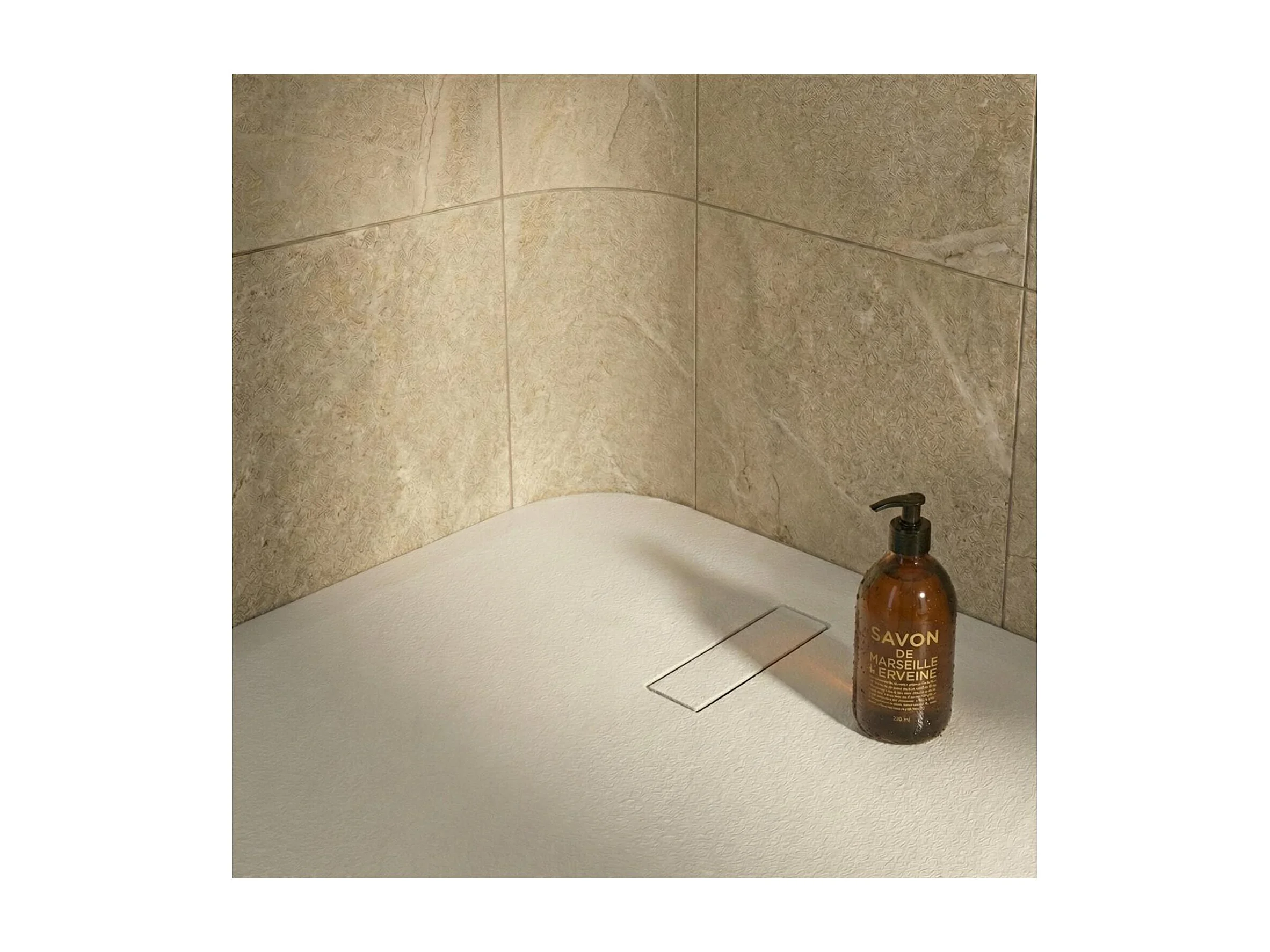 Plato de ducha SOMA extraplano efecto piedra blanco 90x90