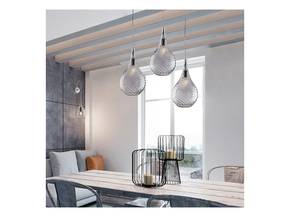 Pluvia Lámpara colgante de hierro con cristal pyrex gris 3 luces 141 Ø50 BL264-S3-GR