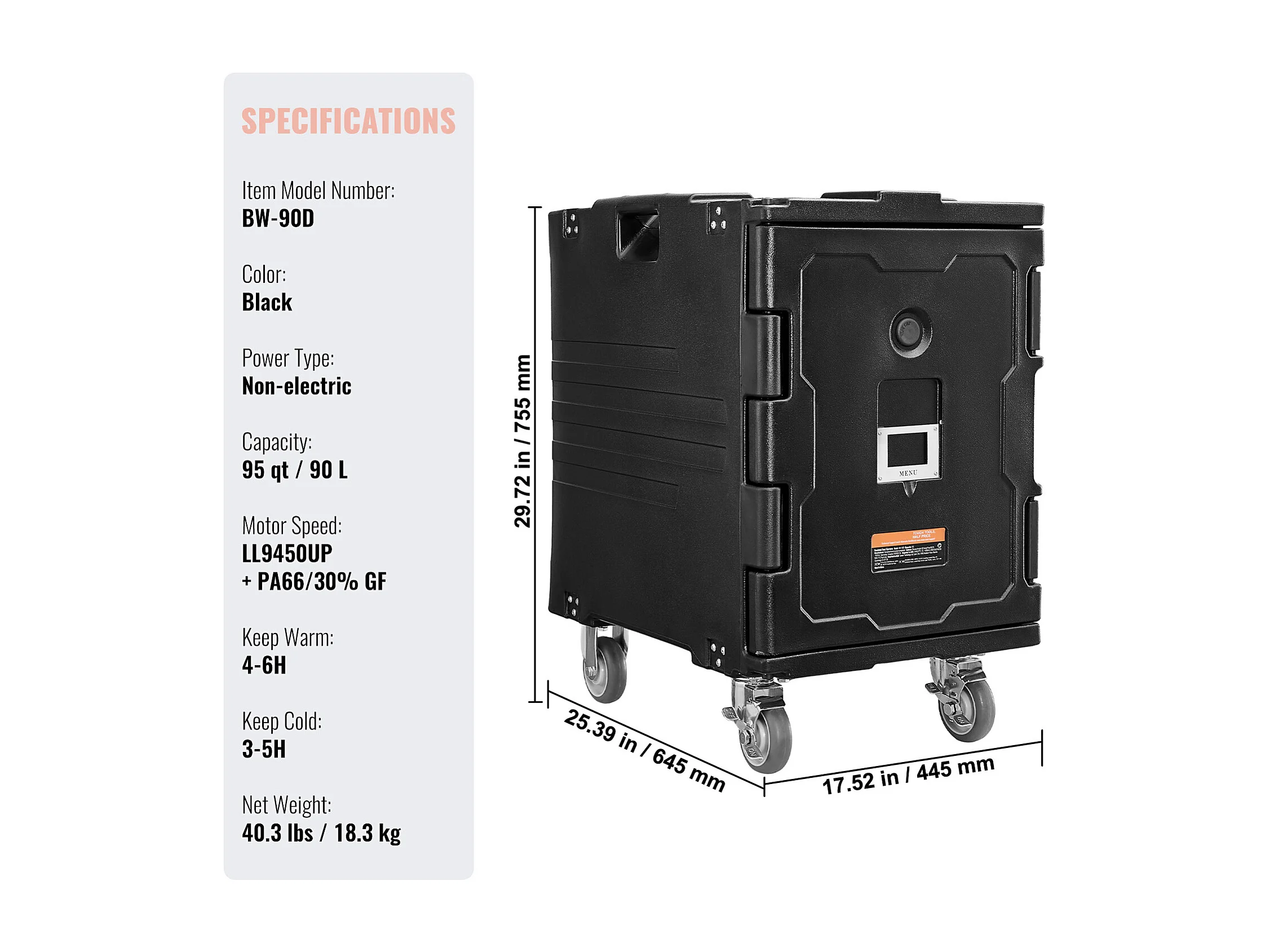 Porta Alimentos Isotérmico SucceBuy, 90 L, con Ruedas Negro
