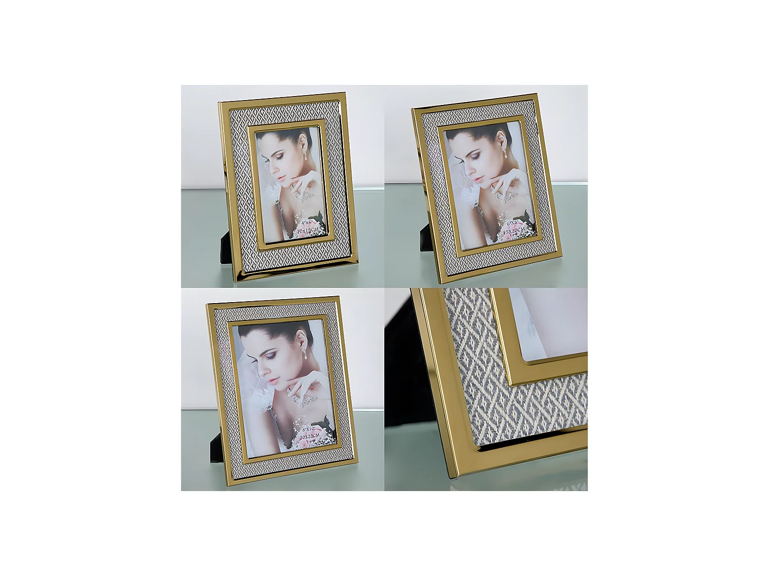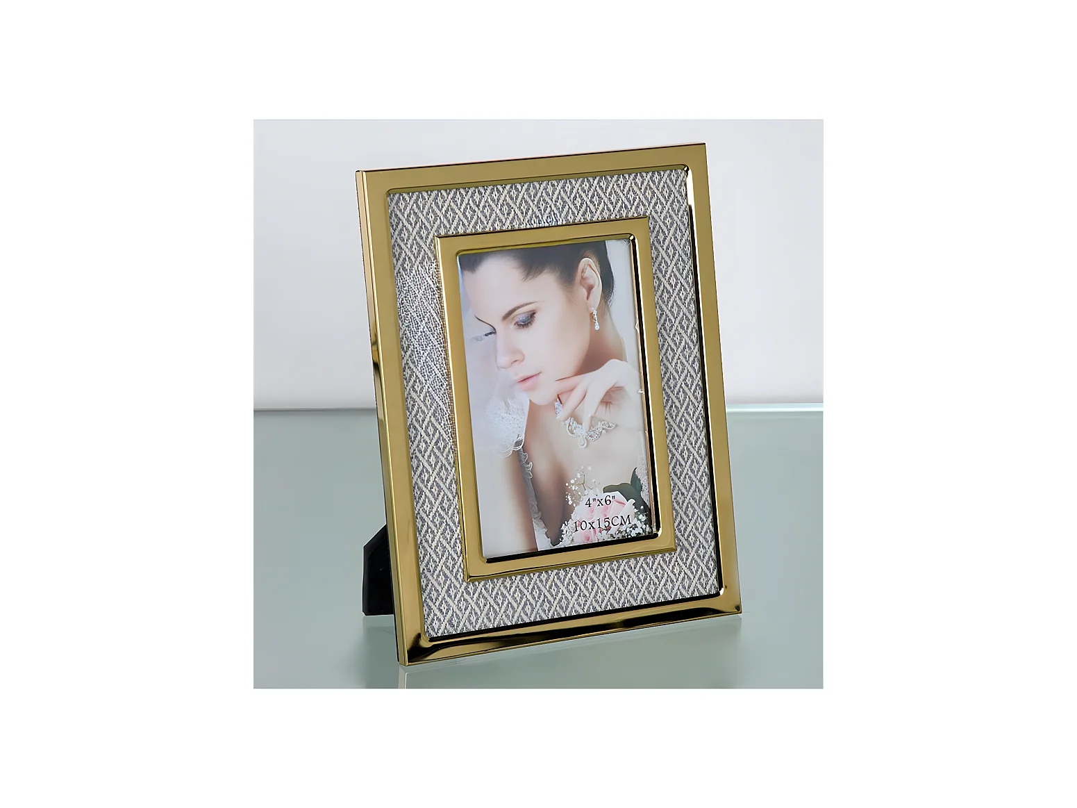 Portafoto 10*15 tela rombos beige metal dorado sintra