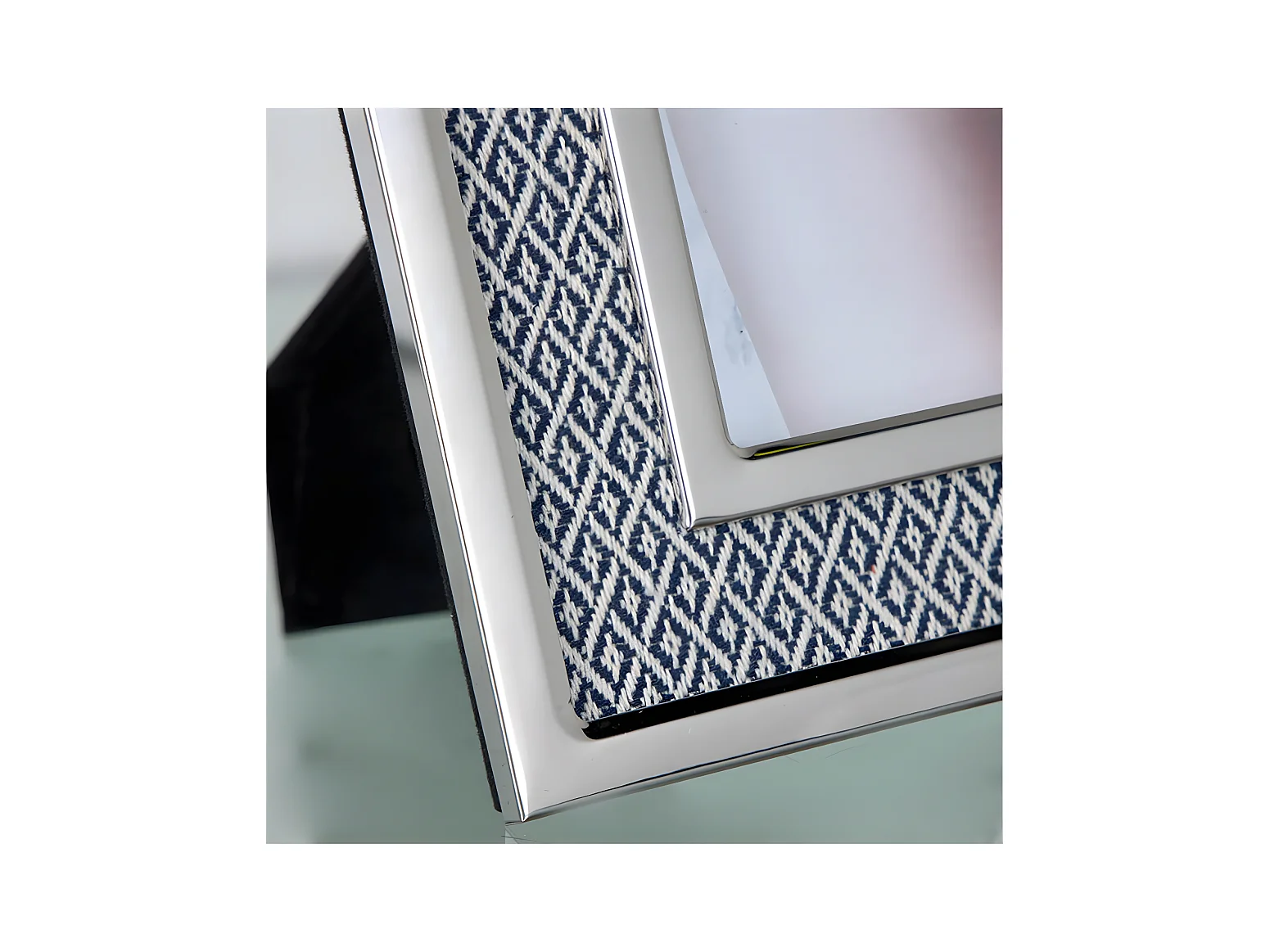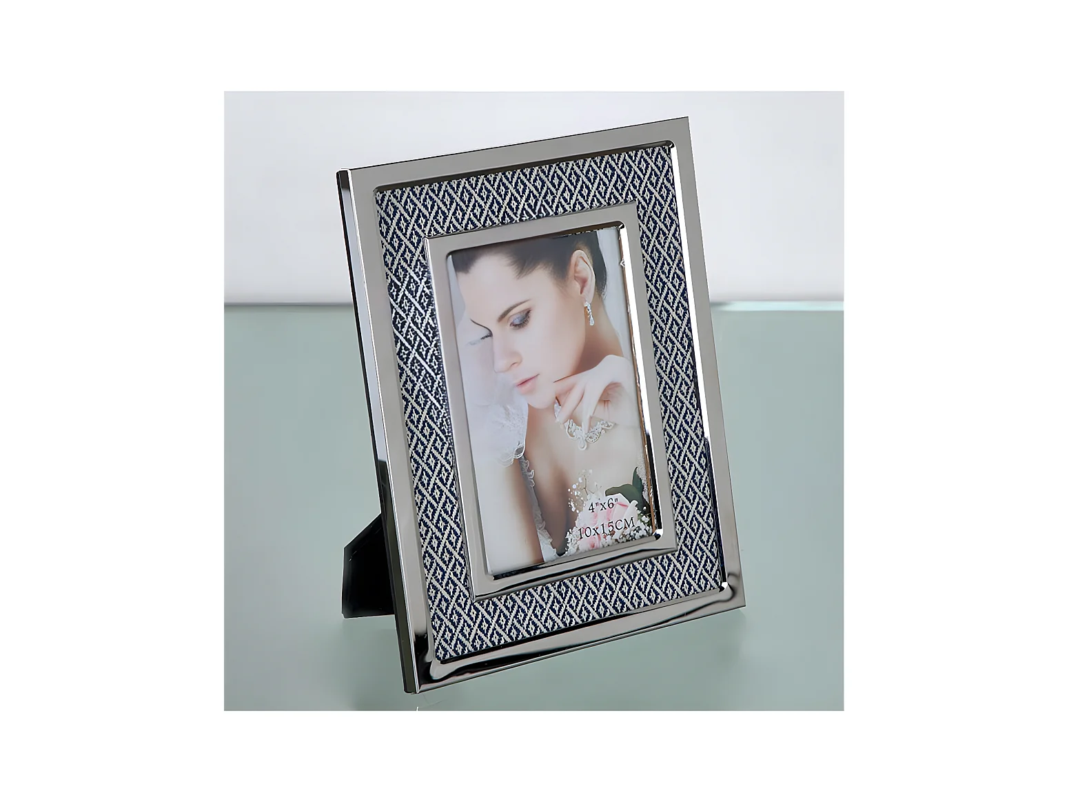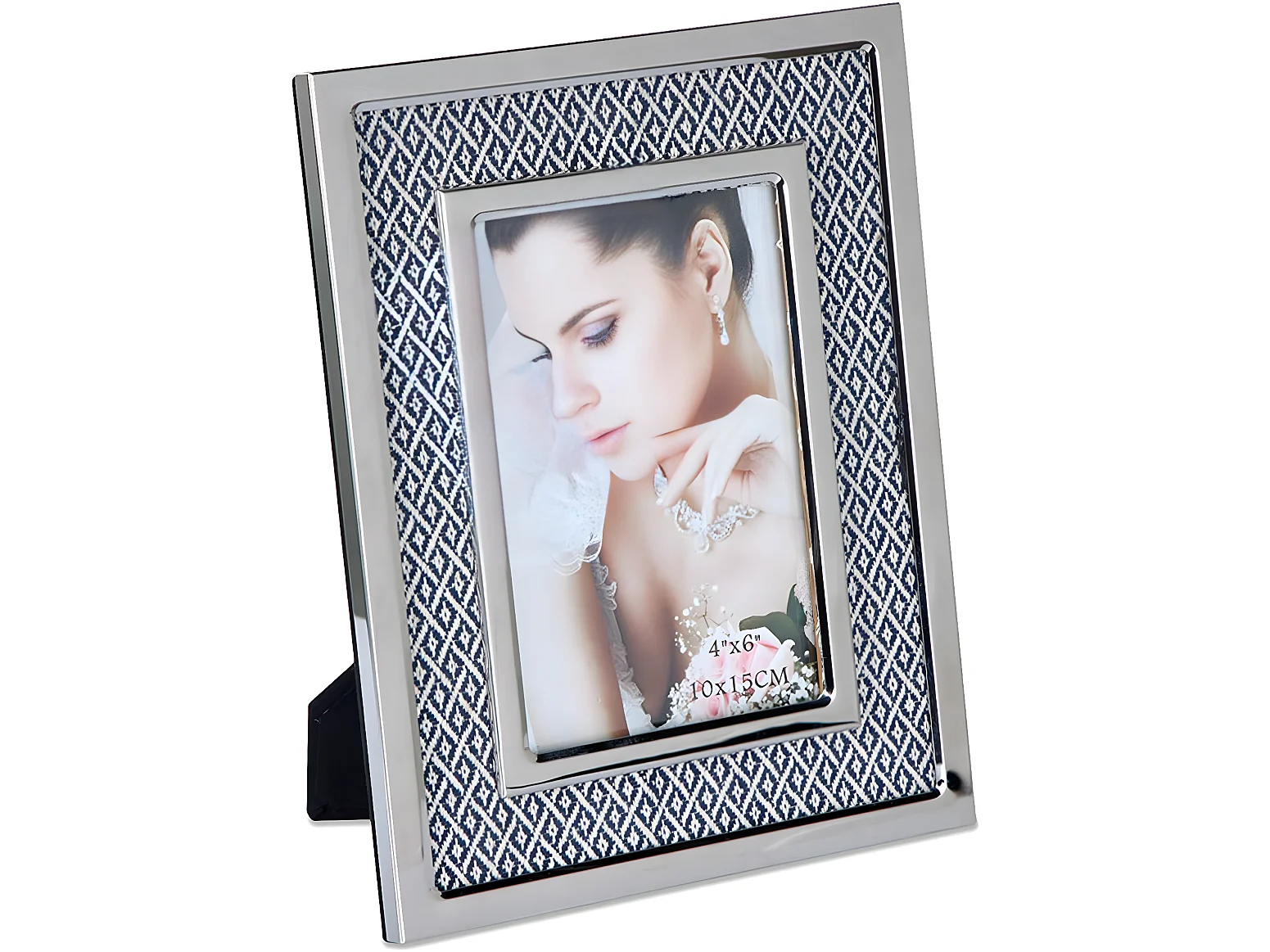 Portafoto 10*15 tela rombos gris y blanco metal plateado sintra