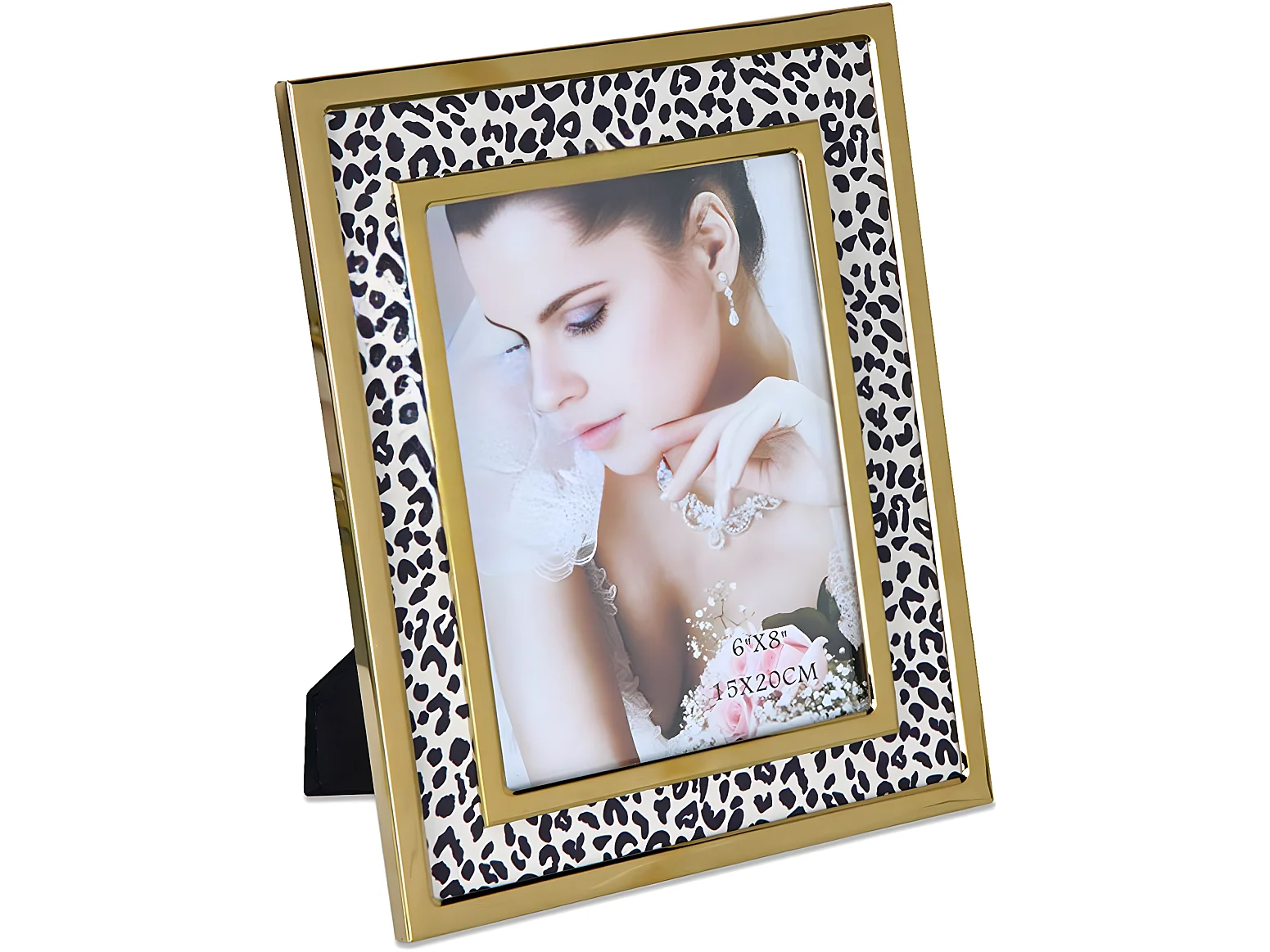 Portafoto 15*20 tela leopardo blanco y negro metal dorado sintra