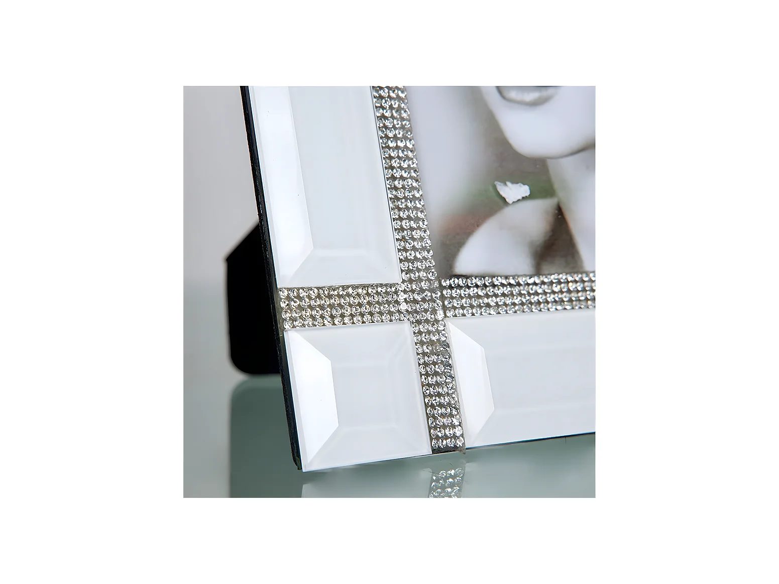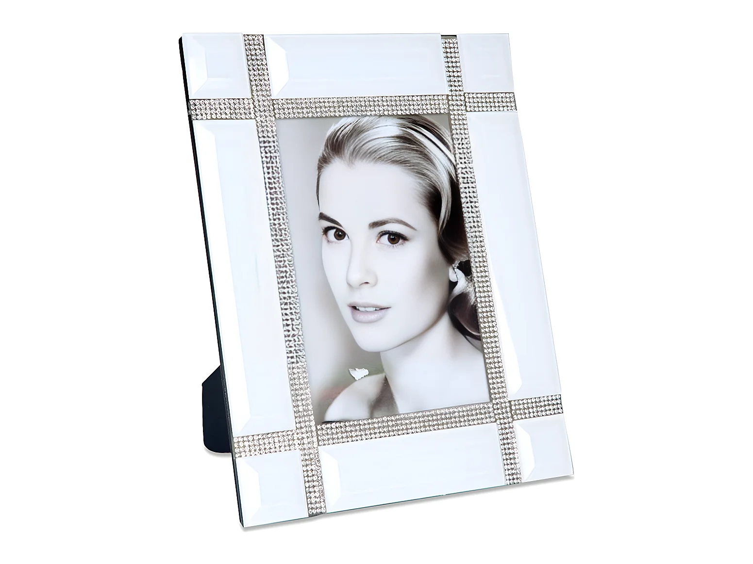 Portafoto de cristal para foto 10*15 en color blanco con detalle de brillantes lucca