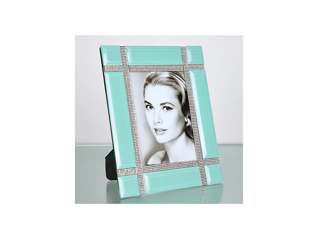 Portafoto de cristal para foto 10*15 en color verde con detalle de brillantes lucca