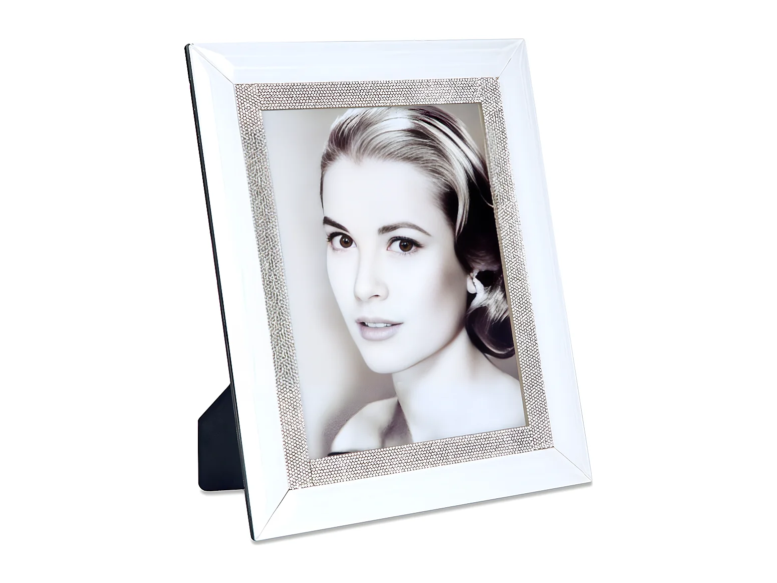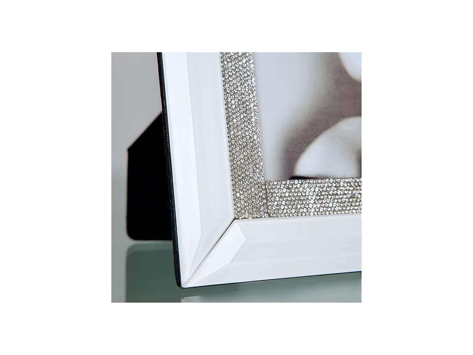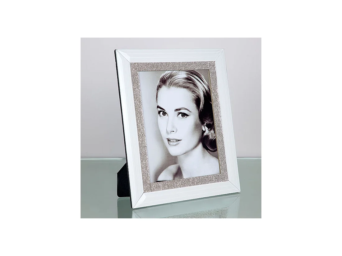 Portafoto para foto 15*20 de cristal blanco con detalle de brillantes en el marco grace
