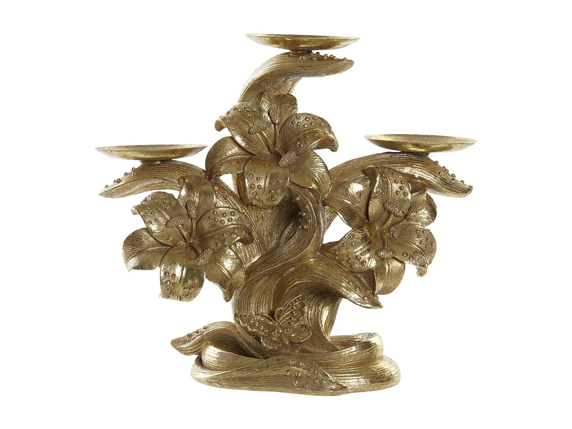PORTAVELA RESINA 26X12X23 FLOR DORADO