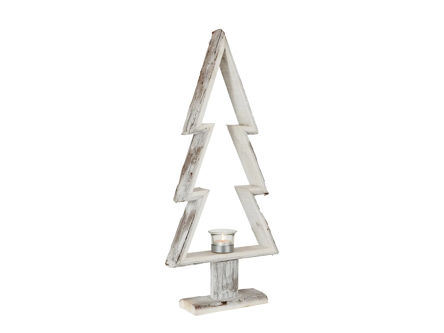 Portavelas árbol de navidad madera marrón/blanco Alt. 63 cm