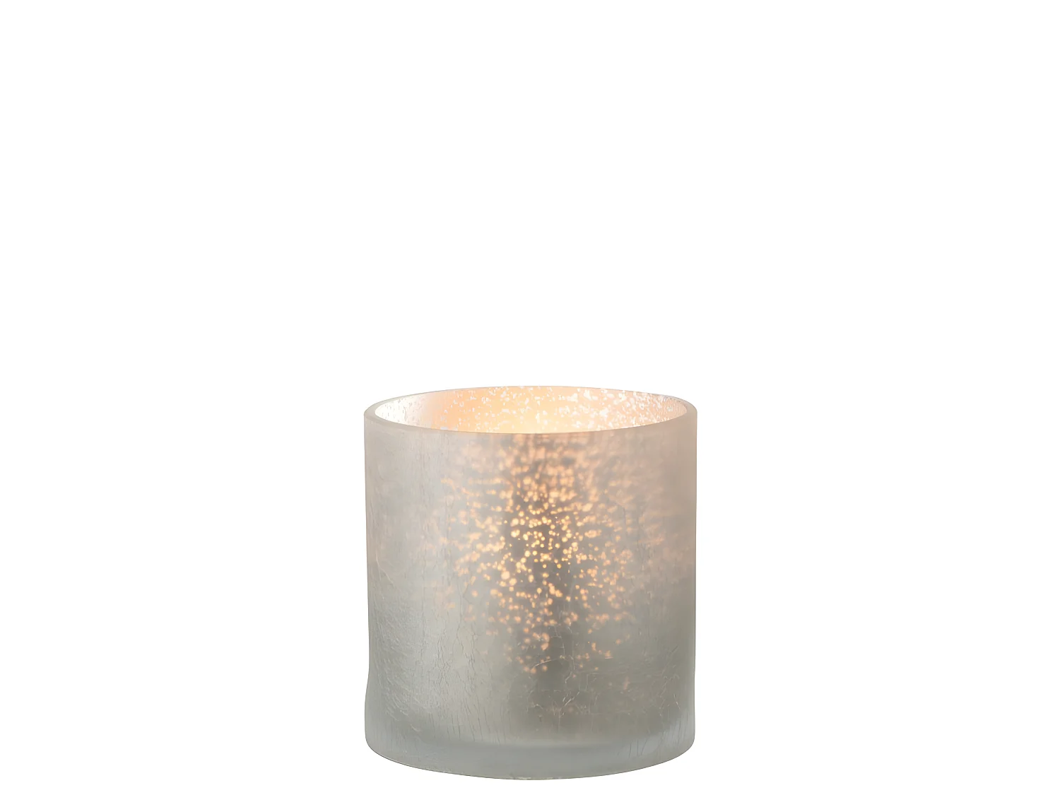 Portavelas cilindro agrietado cristal gris Alt. 15 cm