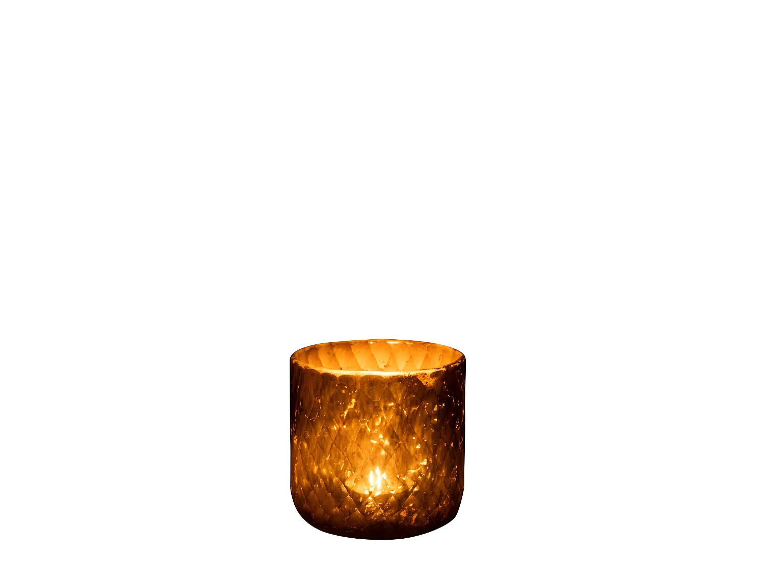 Portavelas cuadriculado cristal oro Alt. 14 cm