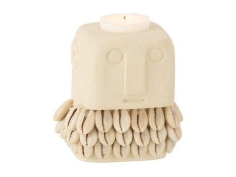 Portavelas de cerámica beige 9x7x10 cm