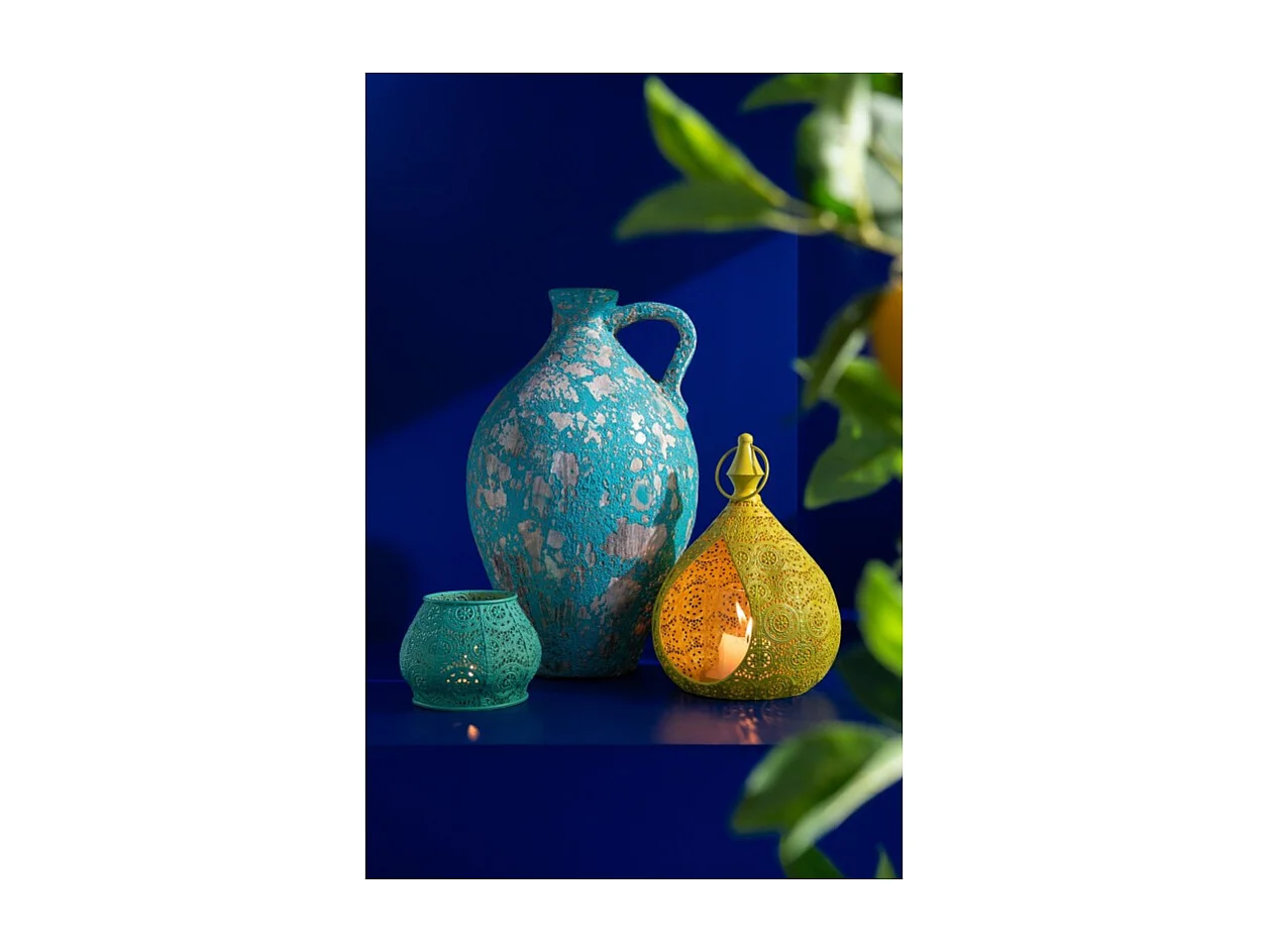 Portavelas redondo cristal azul helado extra Alt. 35 cm
