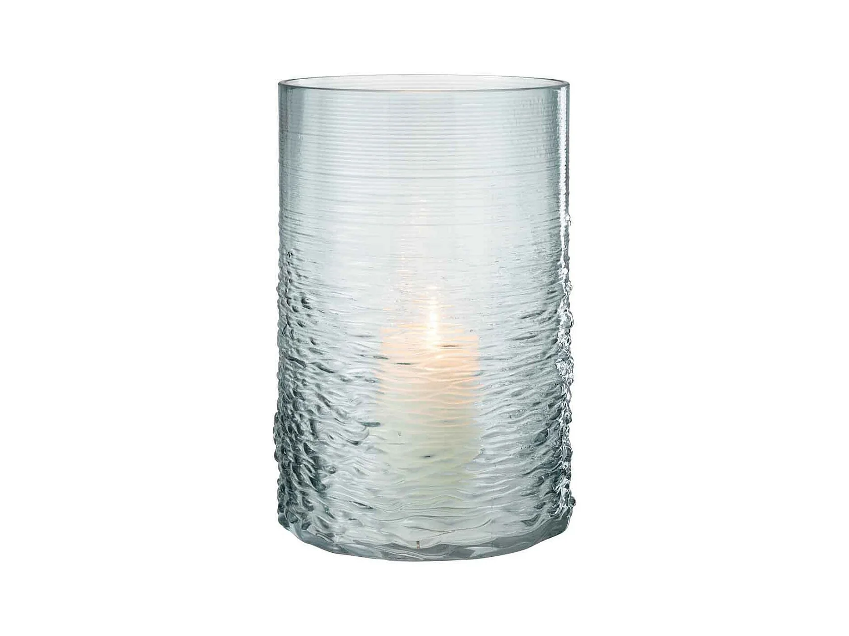 Portavelas de vidrio azul 19.5x19.5x30 cm