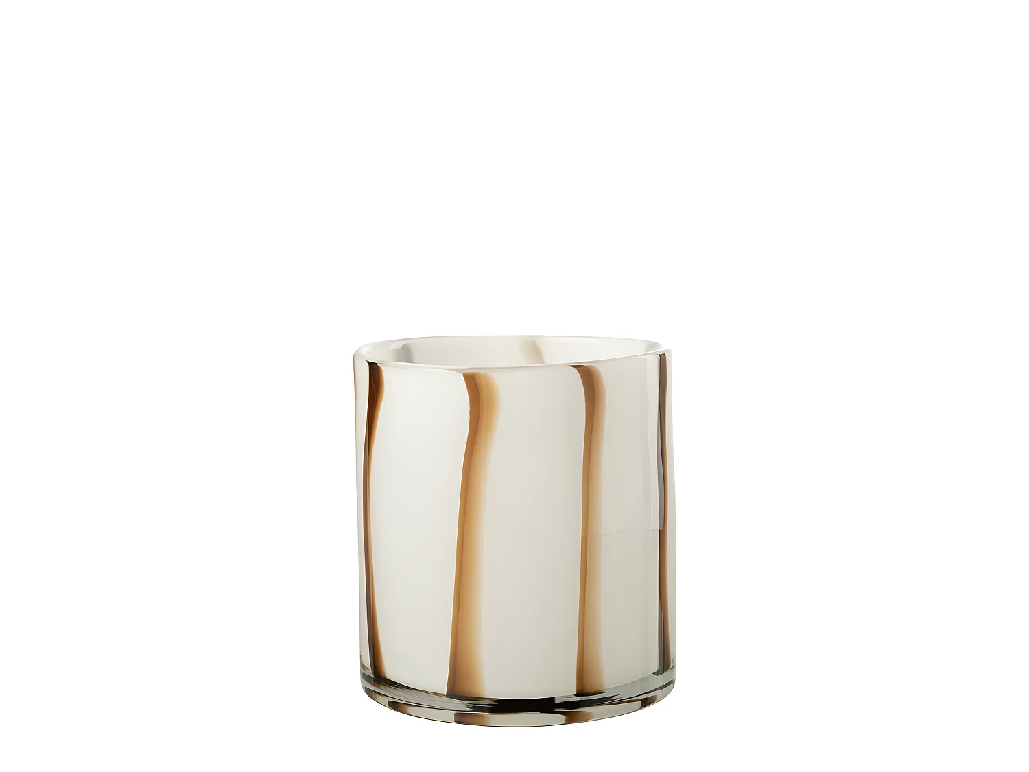 Portavelas de vidrio blanco con líneas marrones L20*l20*H30cm