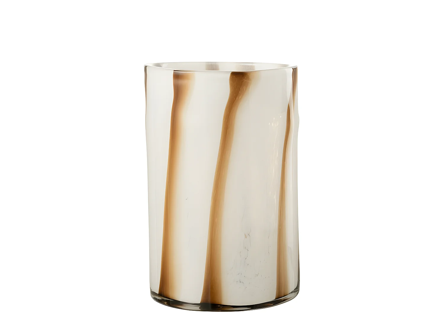 Portavelas de vidrio blanco con líneas marrones L20*l20*H30cm
