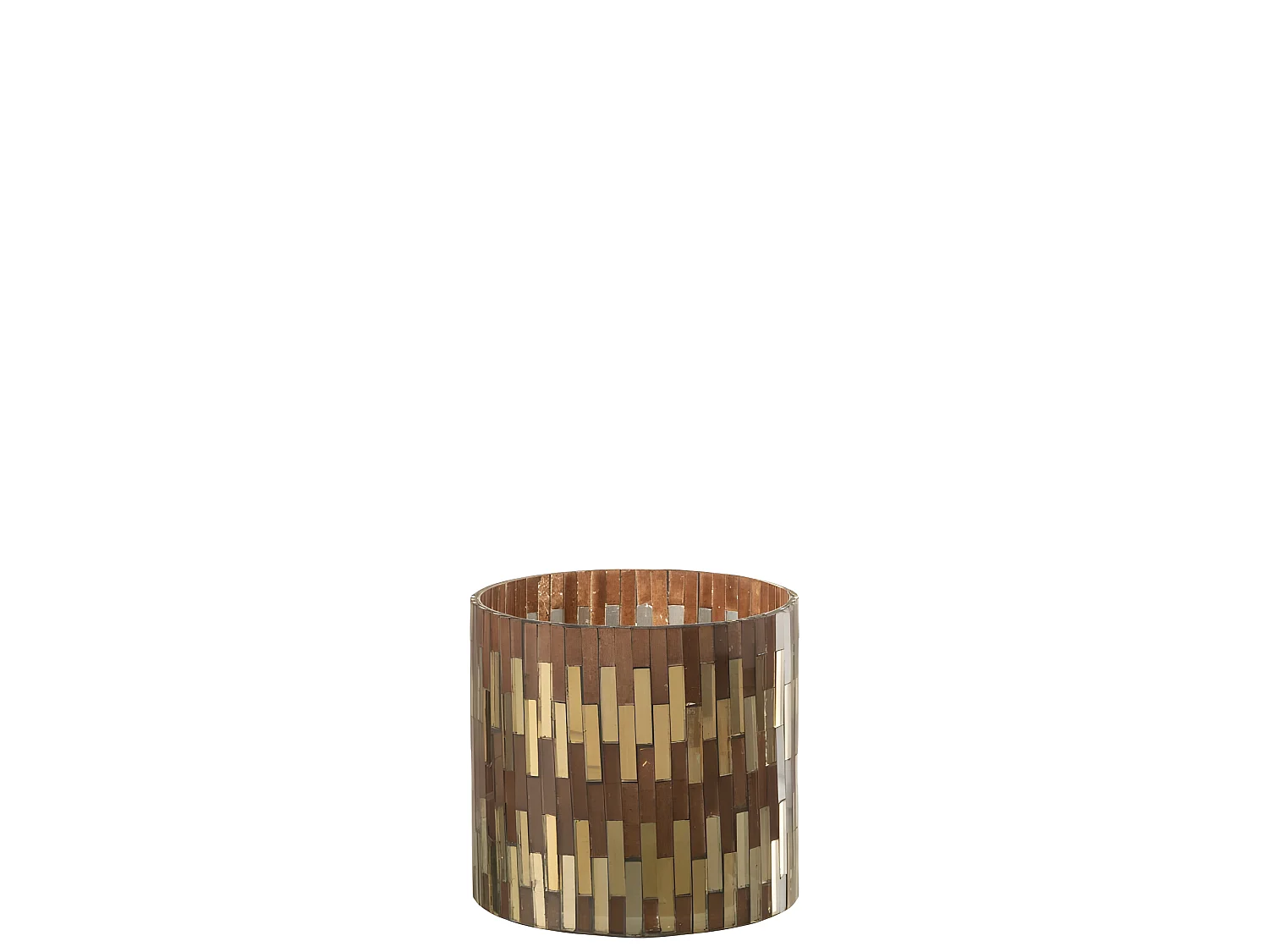 Portavelas de vidrio marrón y beige de 25x25x24cm