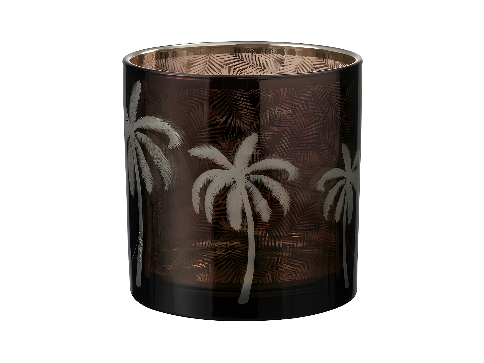 Tarro para velas irregular en vidrio marrón y dorado 12x12x27cm