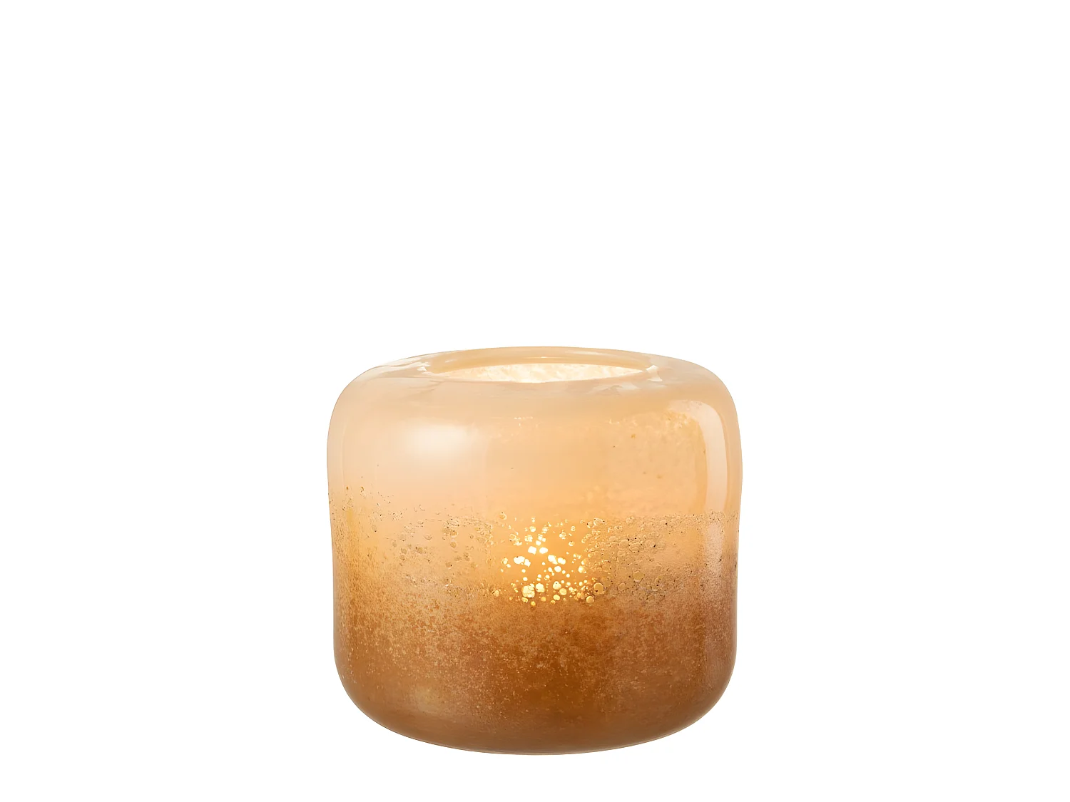 Portavelas de vidrio marrón y beige de 14x14x13cm