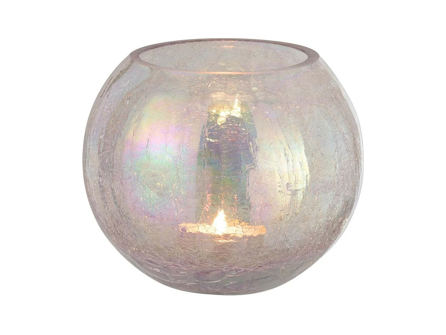 Portavelas irregular de vidrio rosa 14x14x14cm