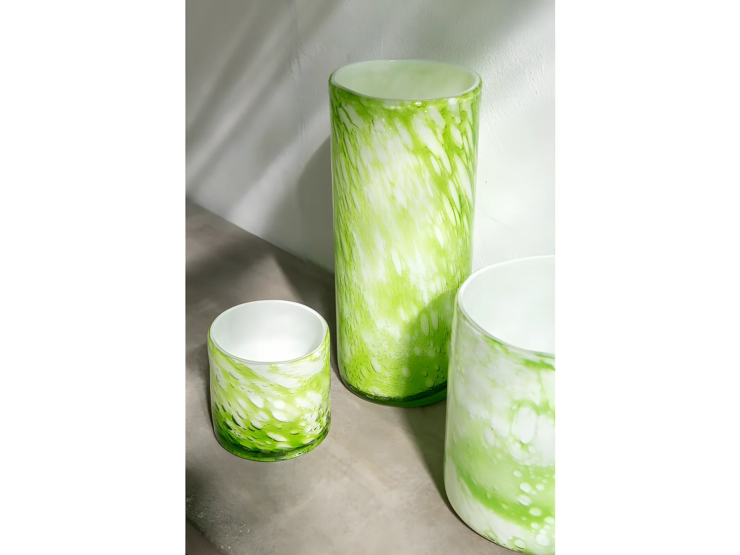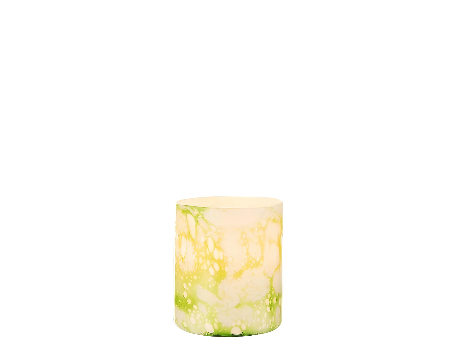 Portavelas de vidrio verde marmolado de 15x15x18 cm